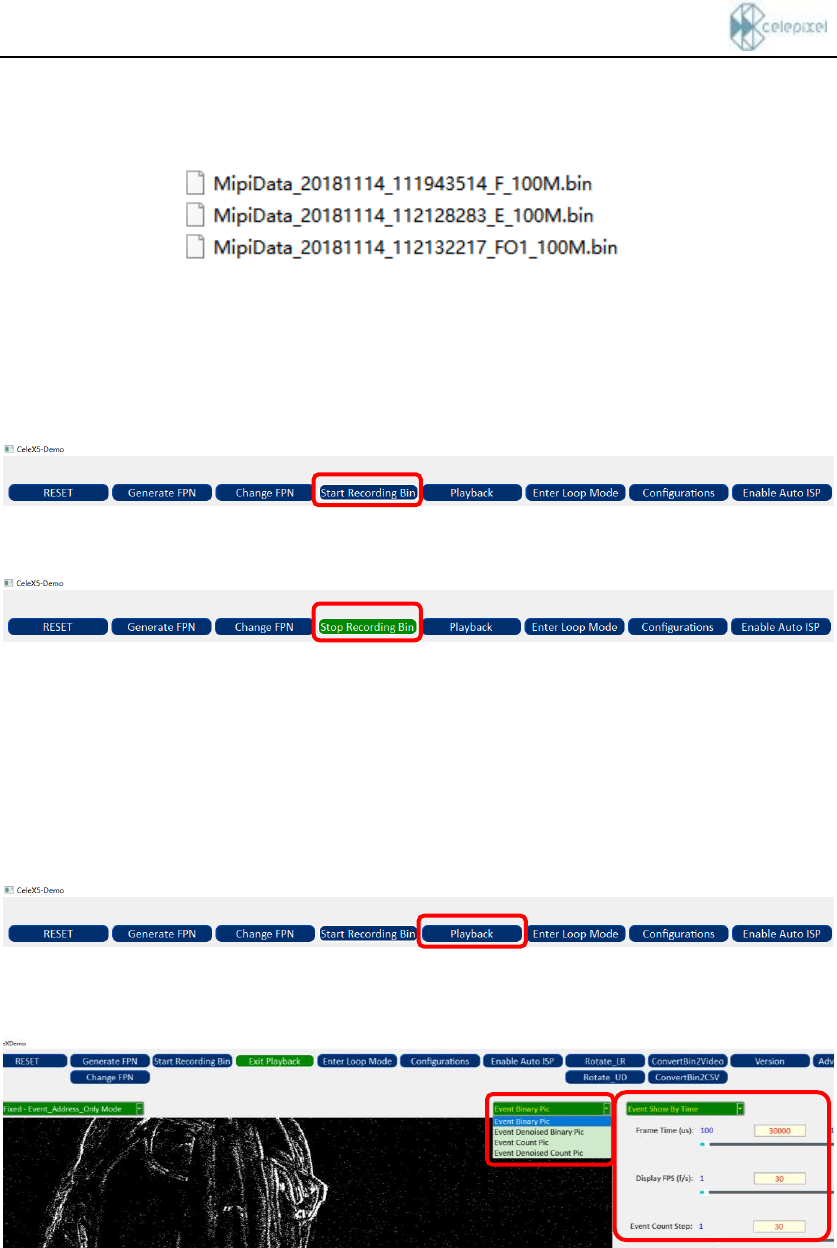 Click the “Playback” button to select a bin file to play, the image displayed in the interface is related