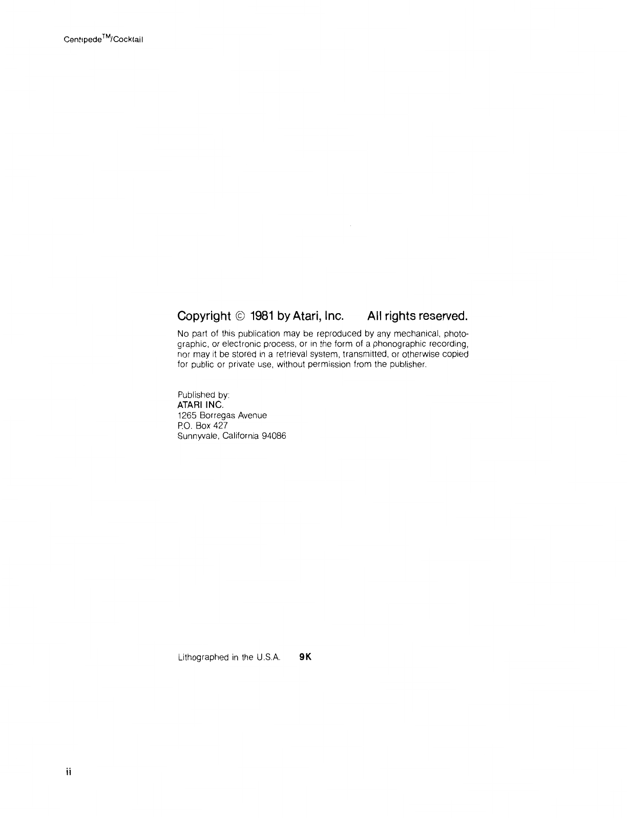 User Manual: Centipede_Cocktail_TM-188_2nd_Printing
