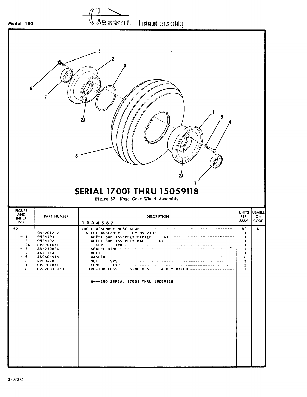 - Fig 52B. Nose Gear Wheel Assembly - Heavy Duty