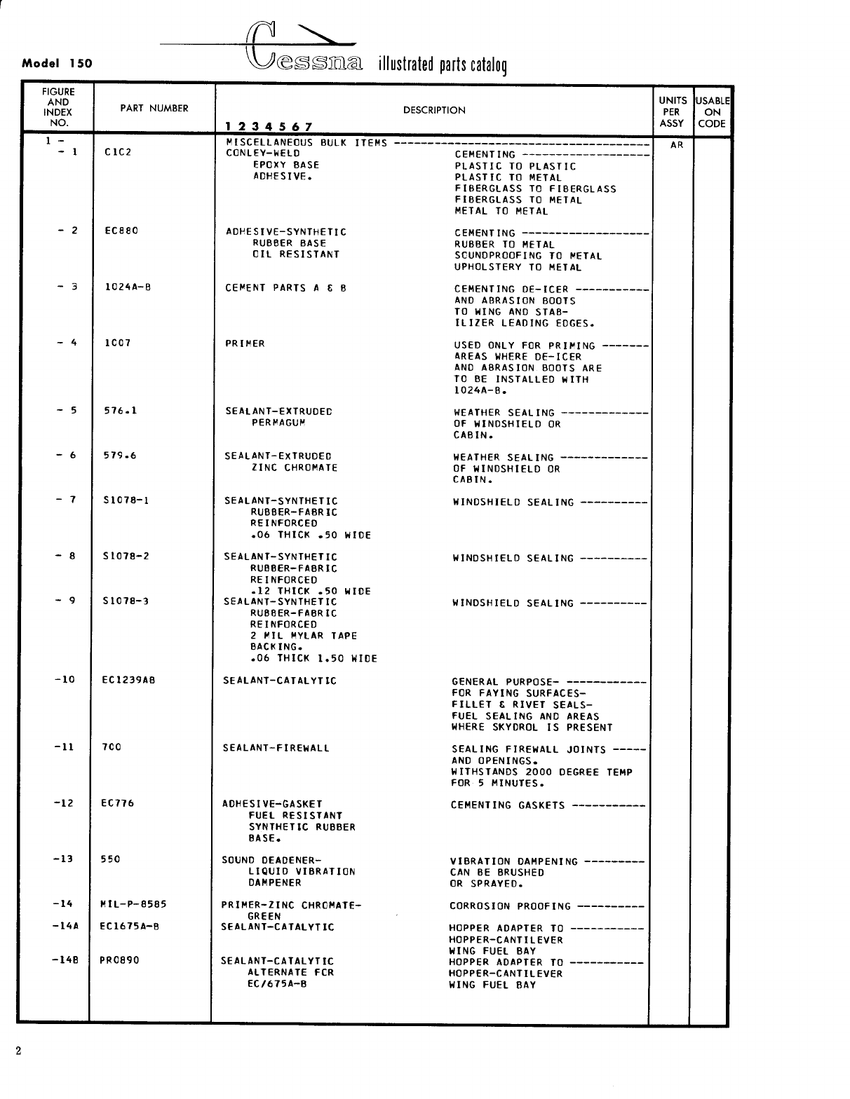 Cessna 150 Parts Catalog For 1959 Thru 1969 Cessna_150_1963 69_Parts Manual 1963 69