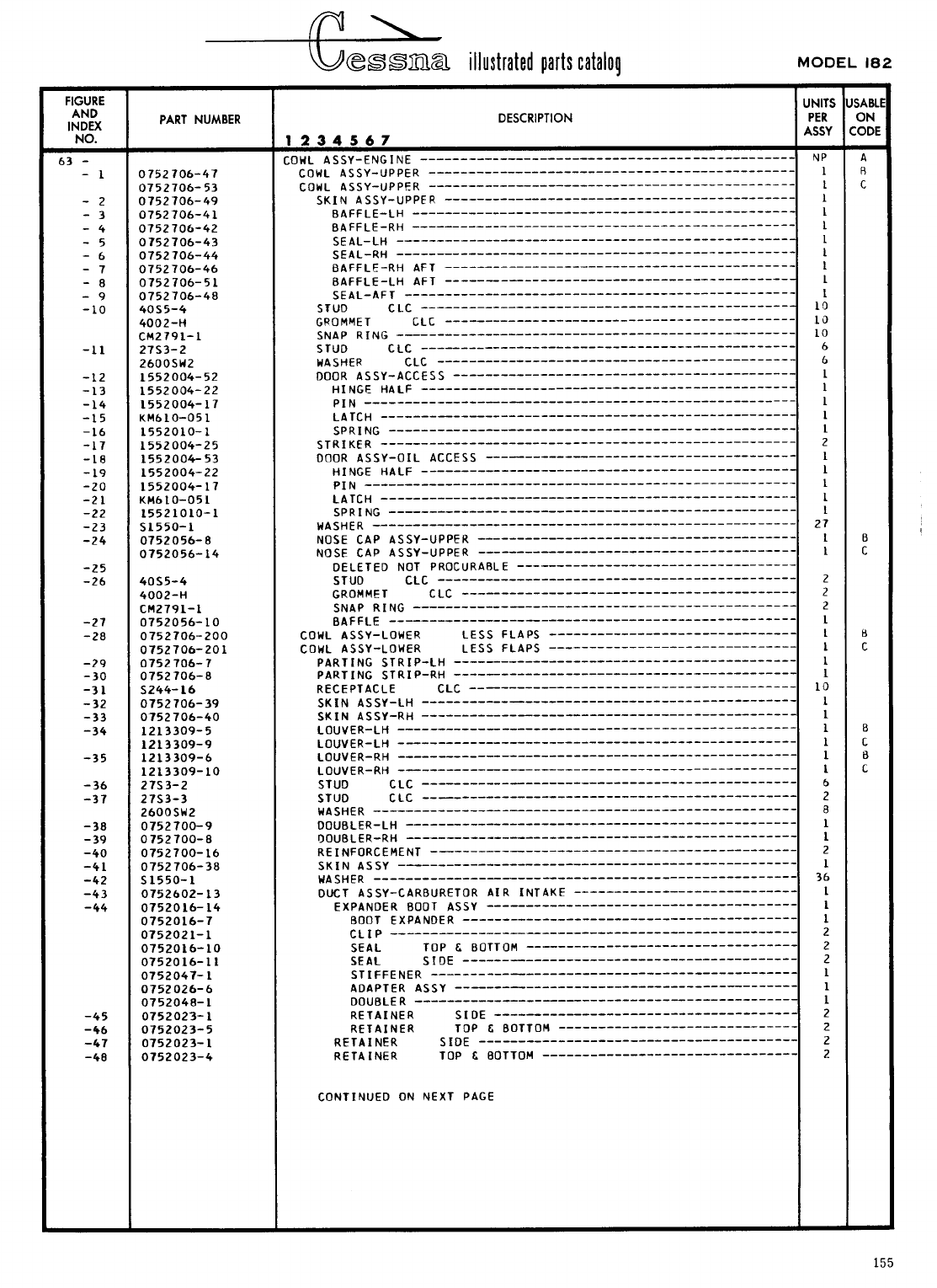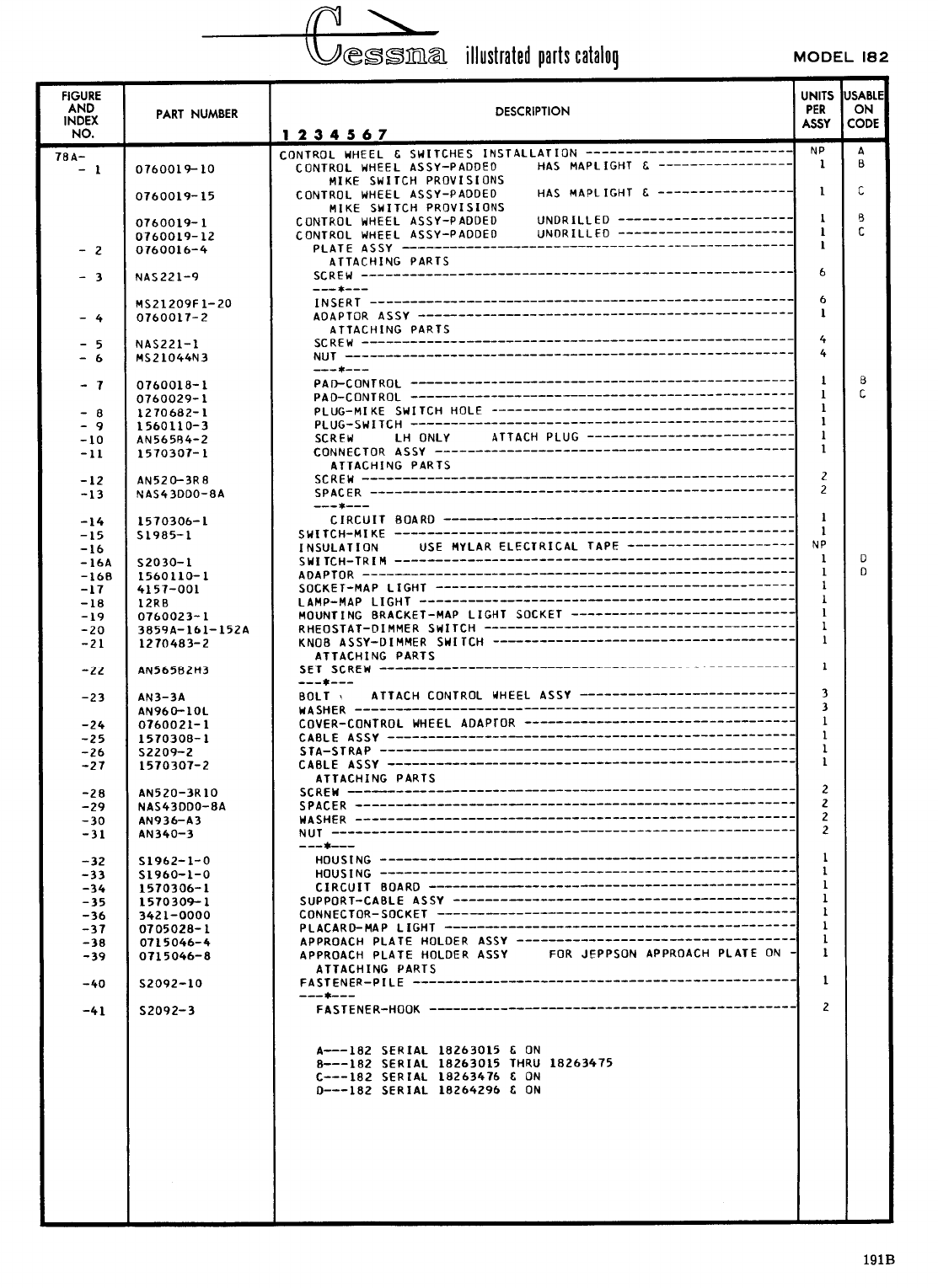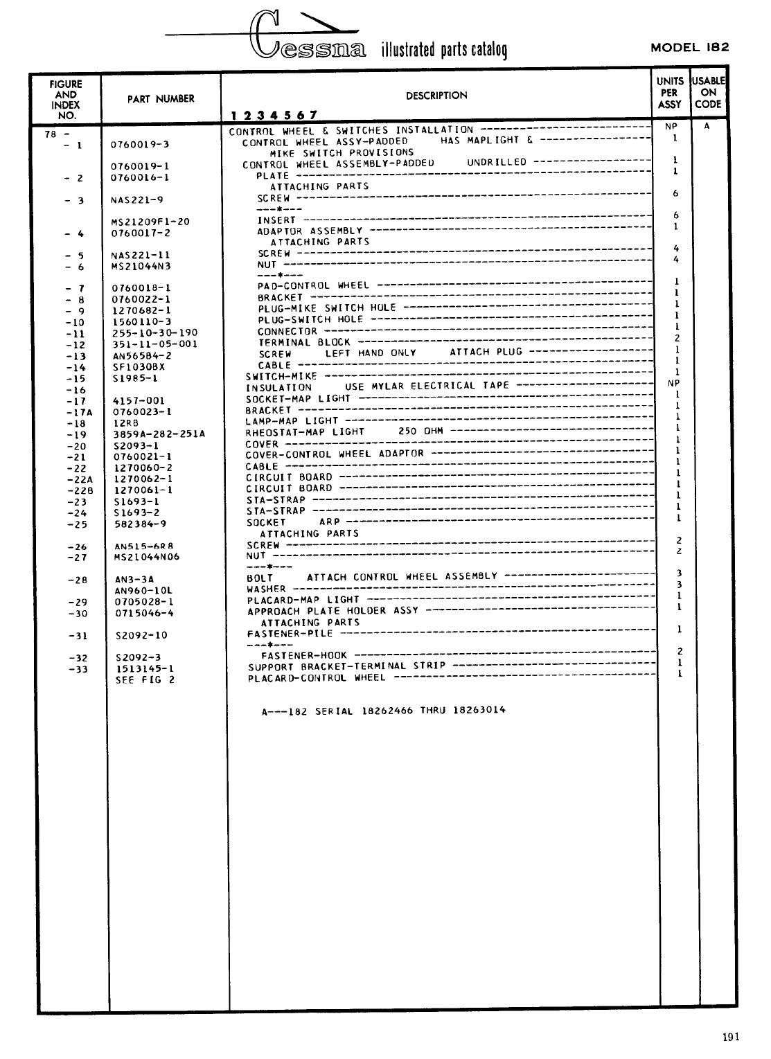Cessna 182 And Skylane Parts Catalog 1974 Thru 1976 Cessna_182_1974 76_Parts Manual 76