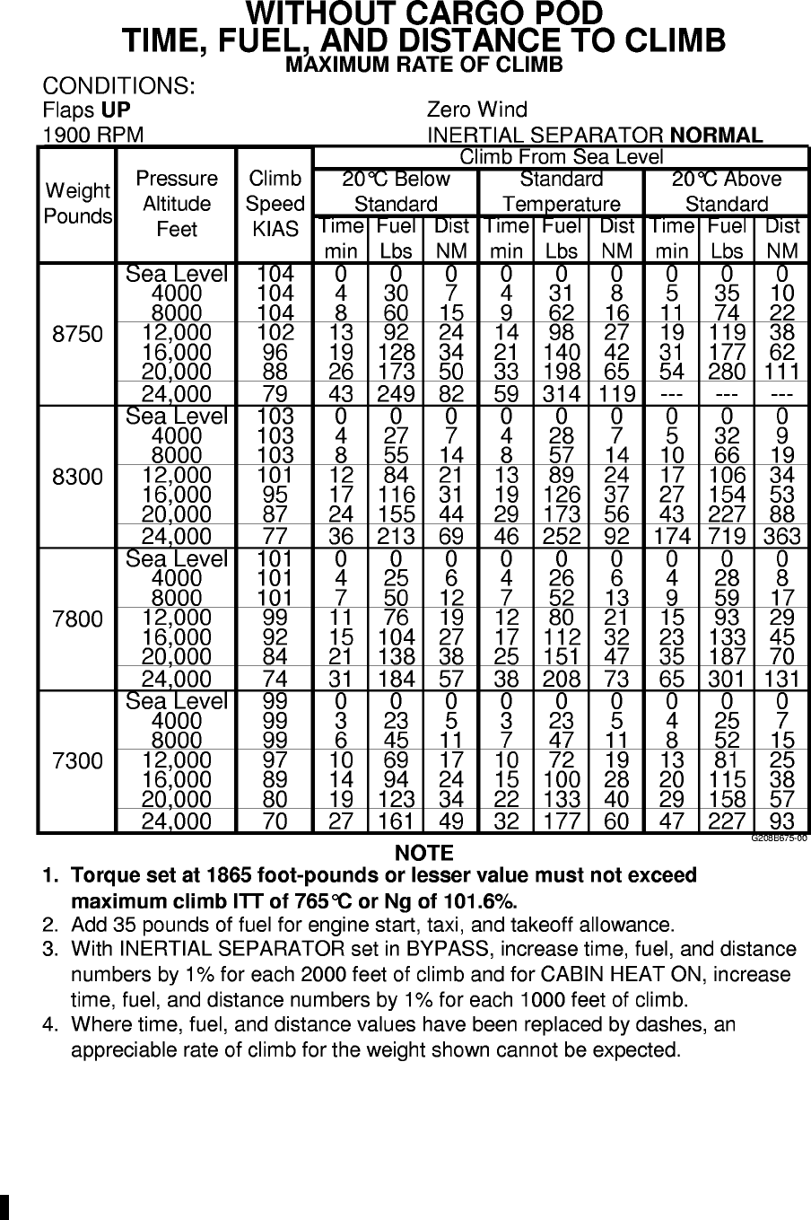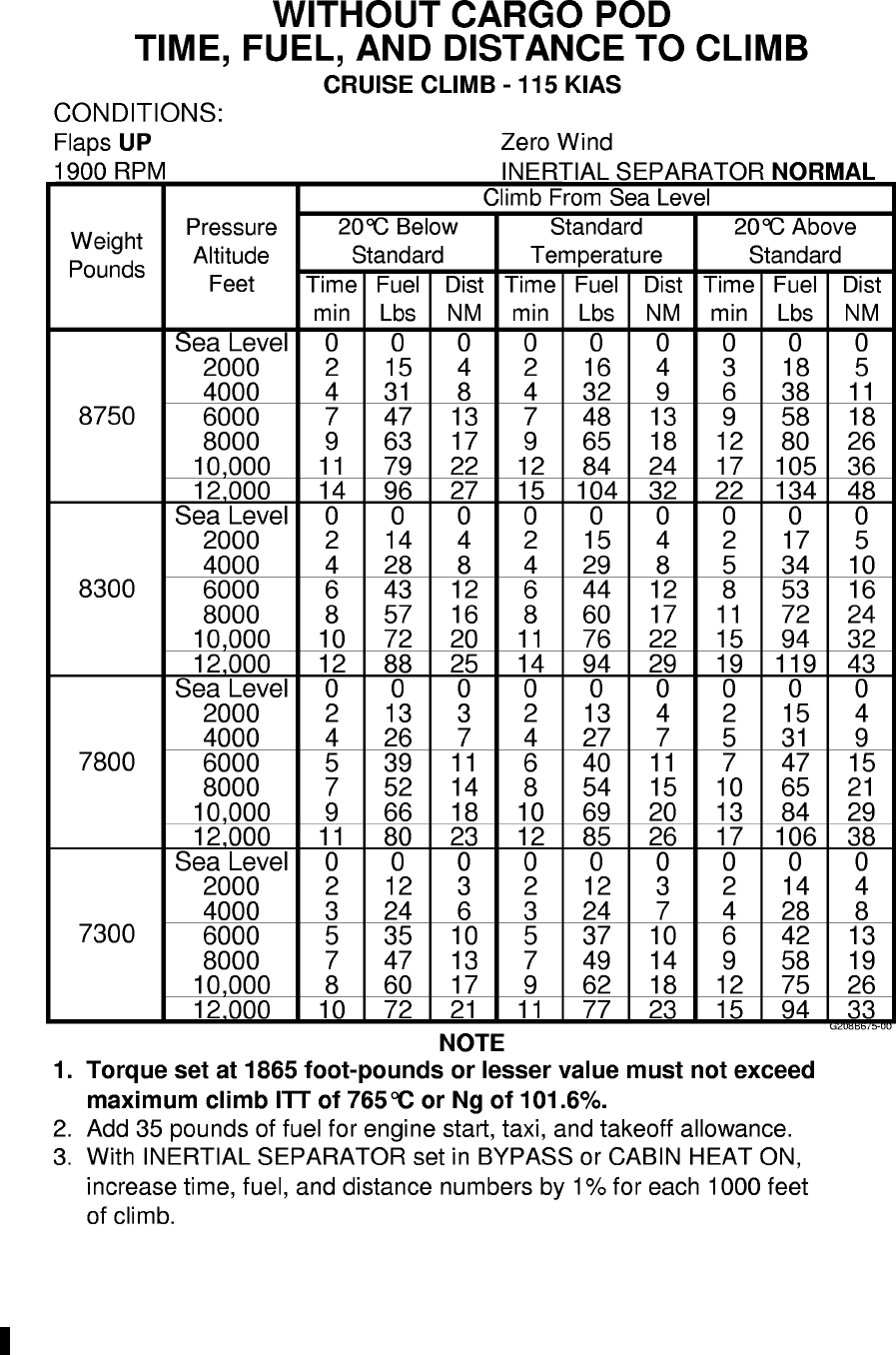 RANGE:With 2224 pounds usable fuel and fuel allowance for engine