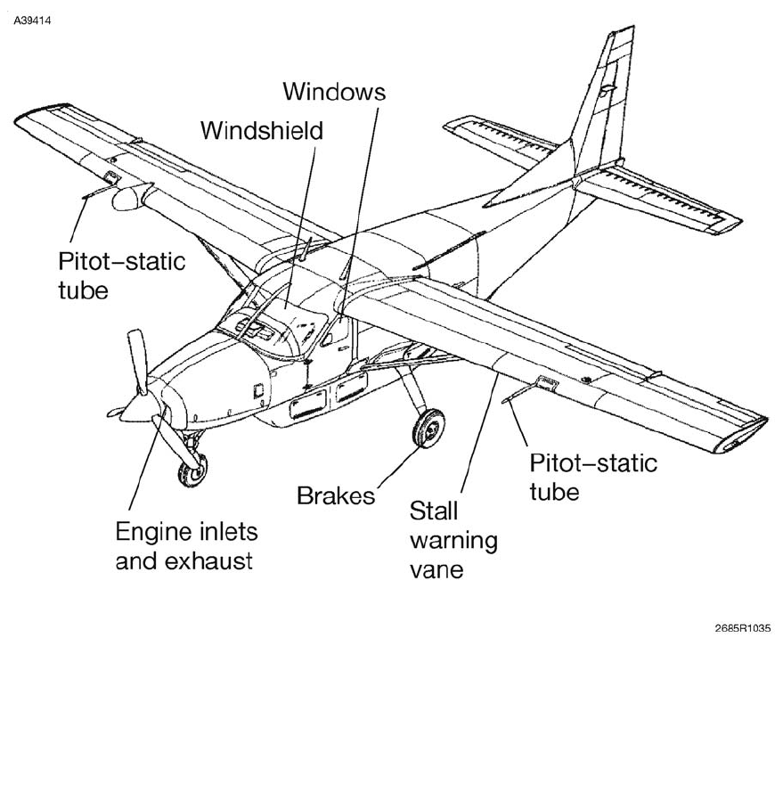 2. Place a cover over the pitot tube and install the two engine inlet