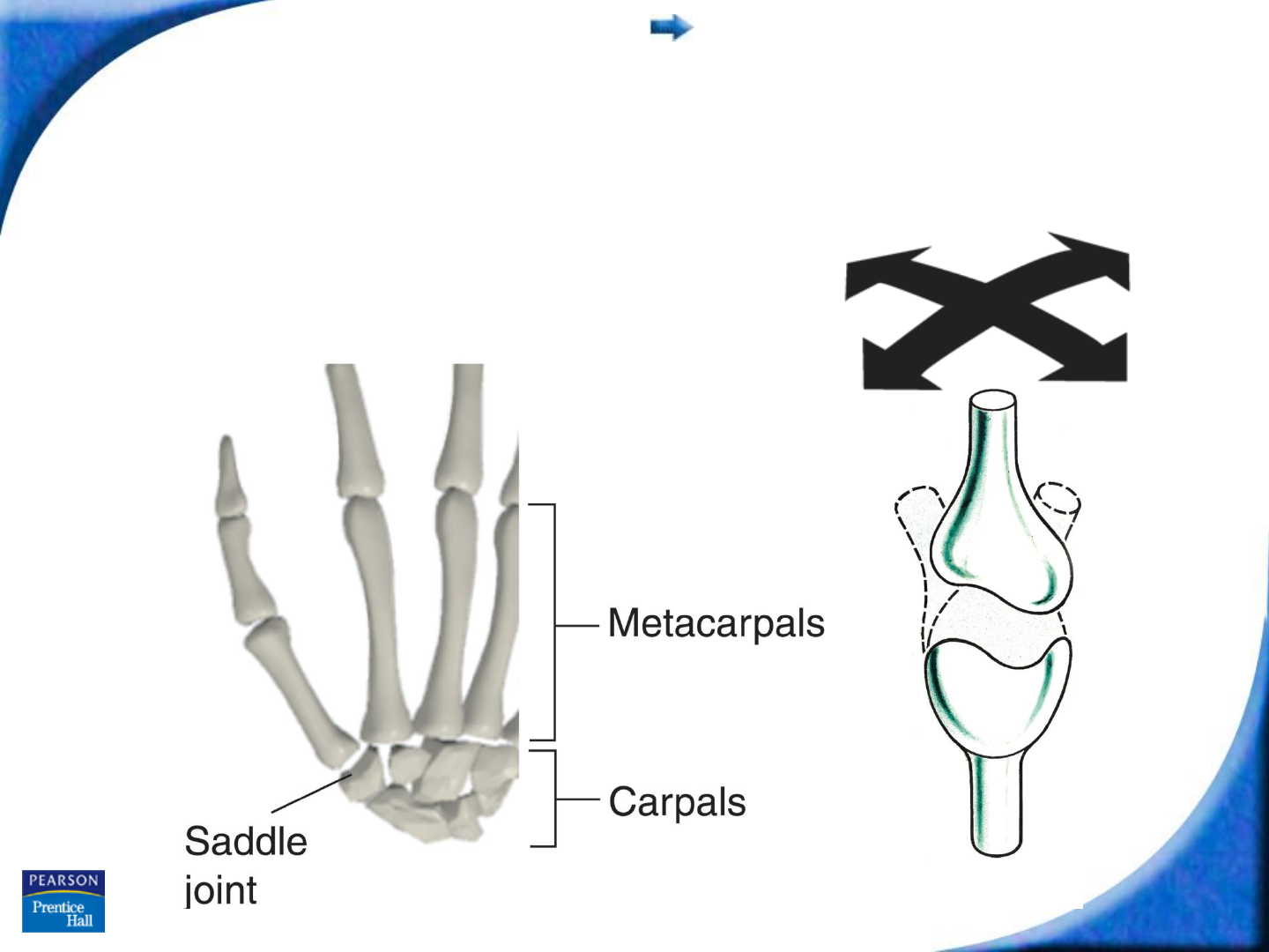 Saddle joints permit one bone to slide in two