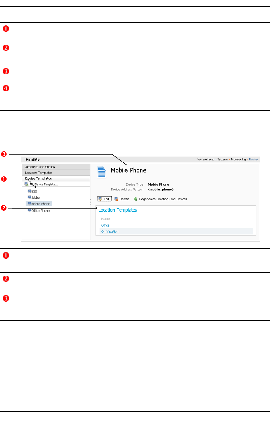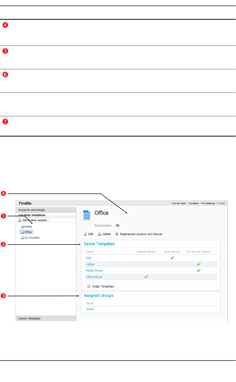 Displays the list of locations for which the selected device rings as a default, busy, or