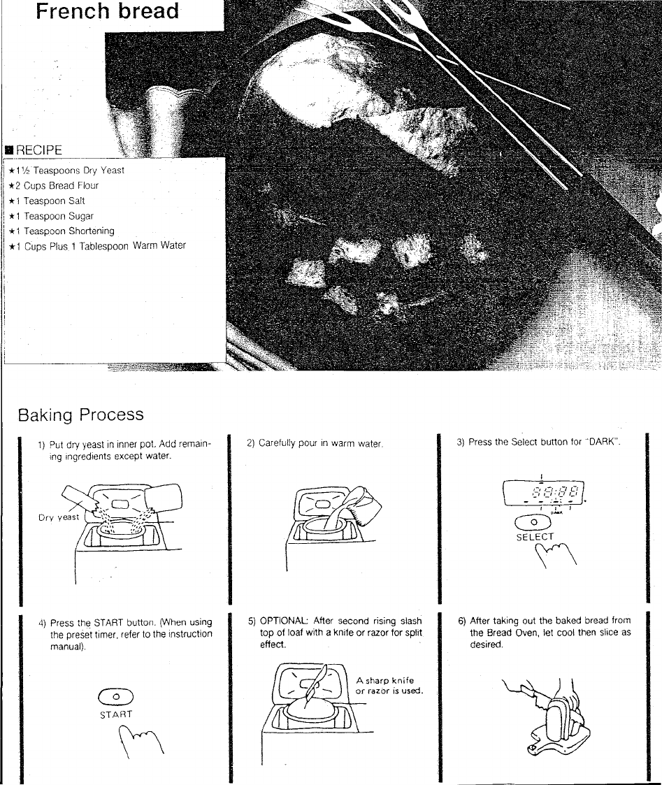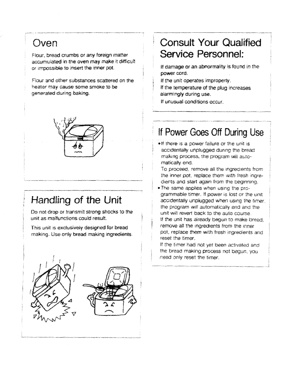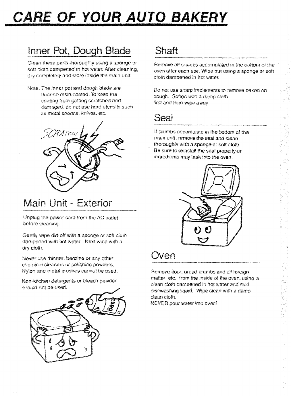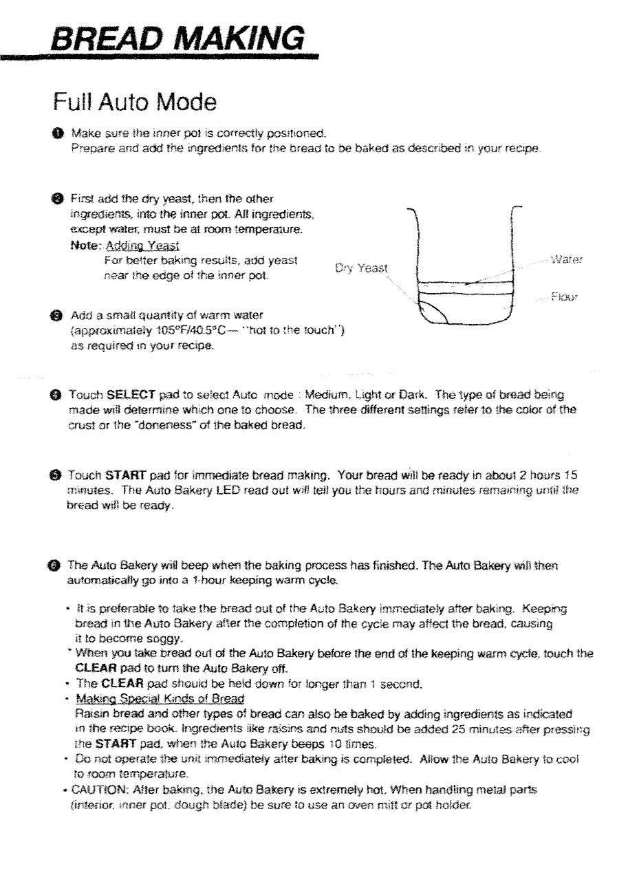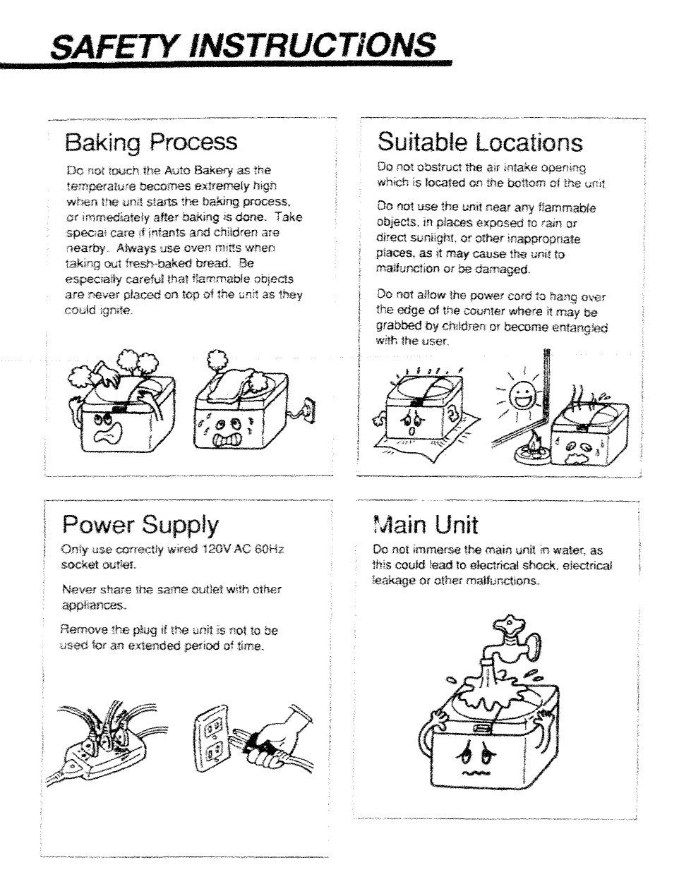 8) NEVER touch the metal parts of the Bread Oven during or just after the baking process.