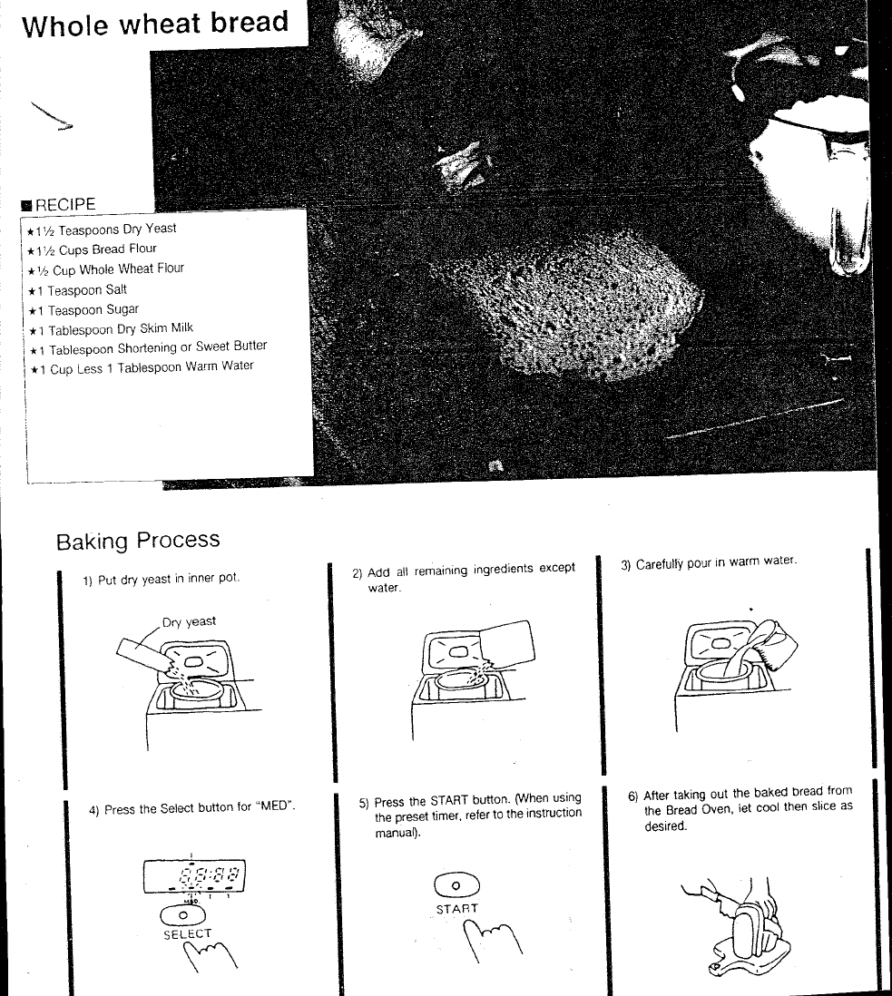 1) Put dry yeast in inner pot. 2) Add all remaining ingredients except