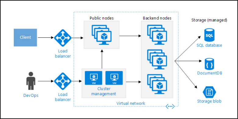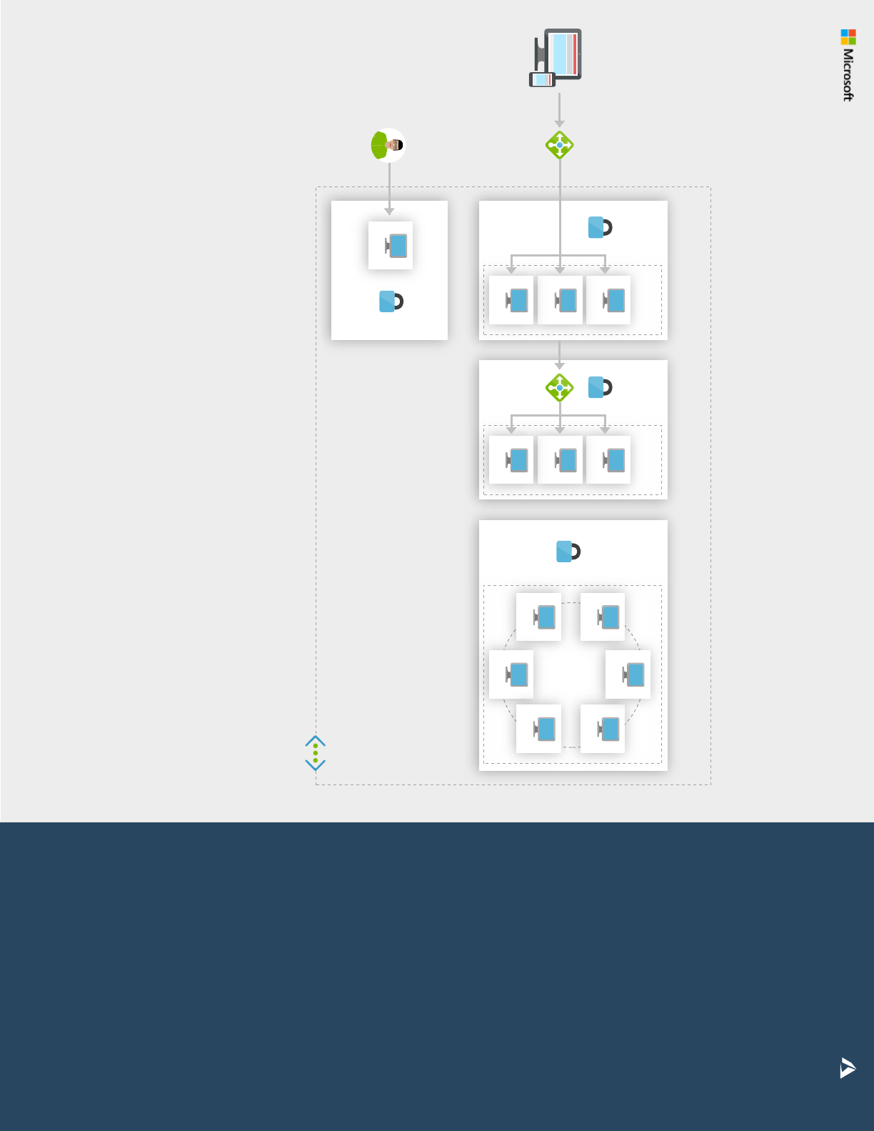 • For the data tier, this architecture shows Apache Cassandra for data replication and failover. Other database systems have similar functionality.