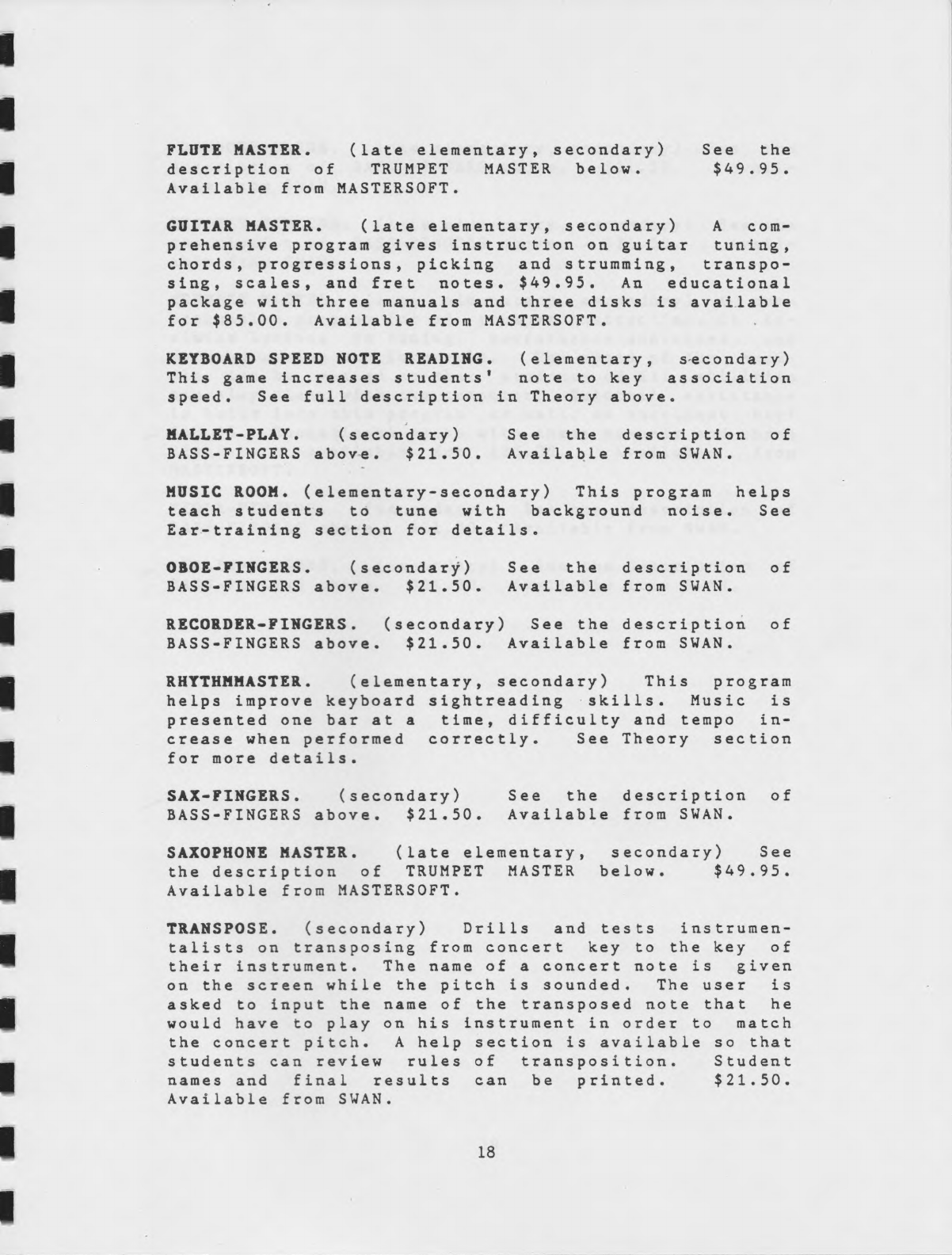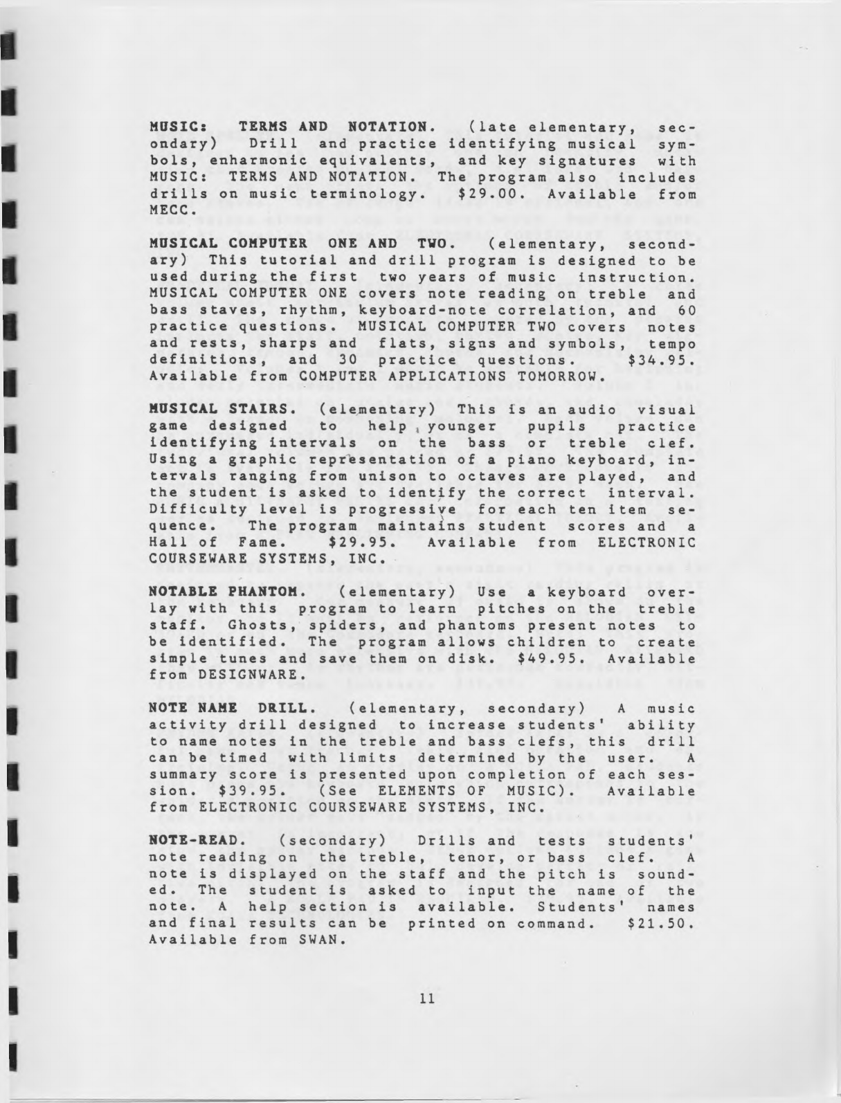 USING SOFTWARE FOR MUSIC INSTRUCTION