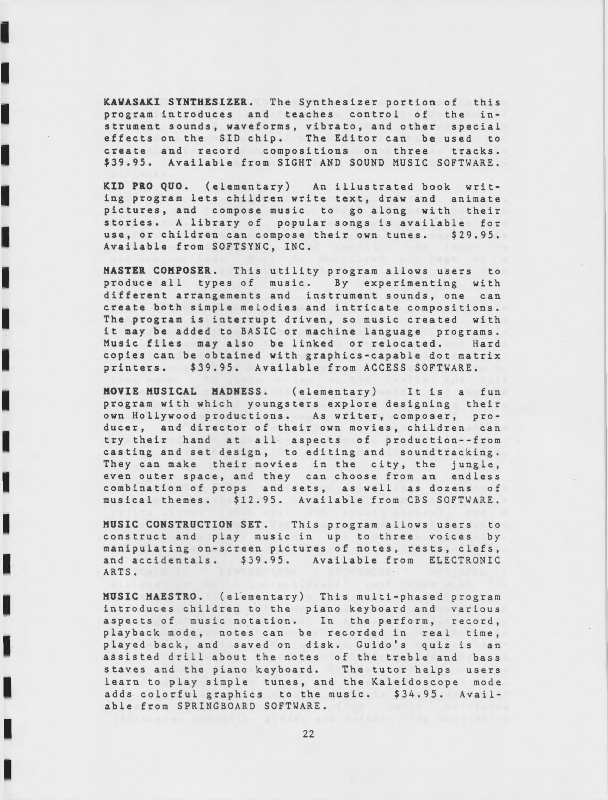 EDUCATION SOFTWARE AND KEYBOARD SYSTEMS