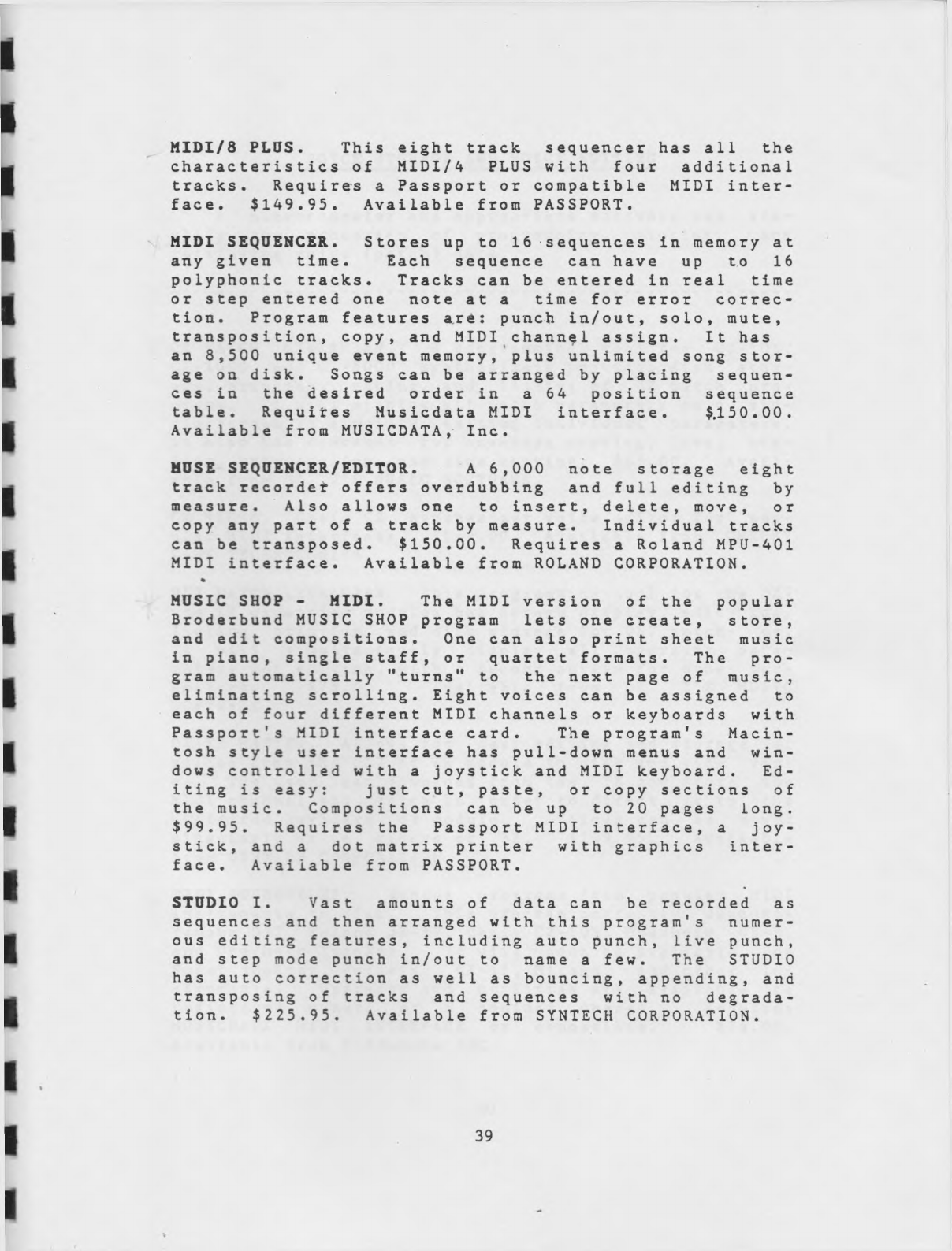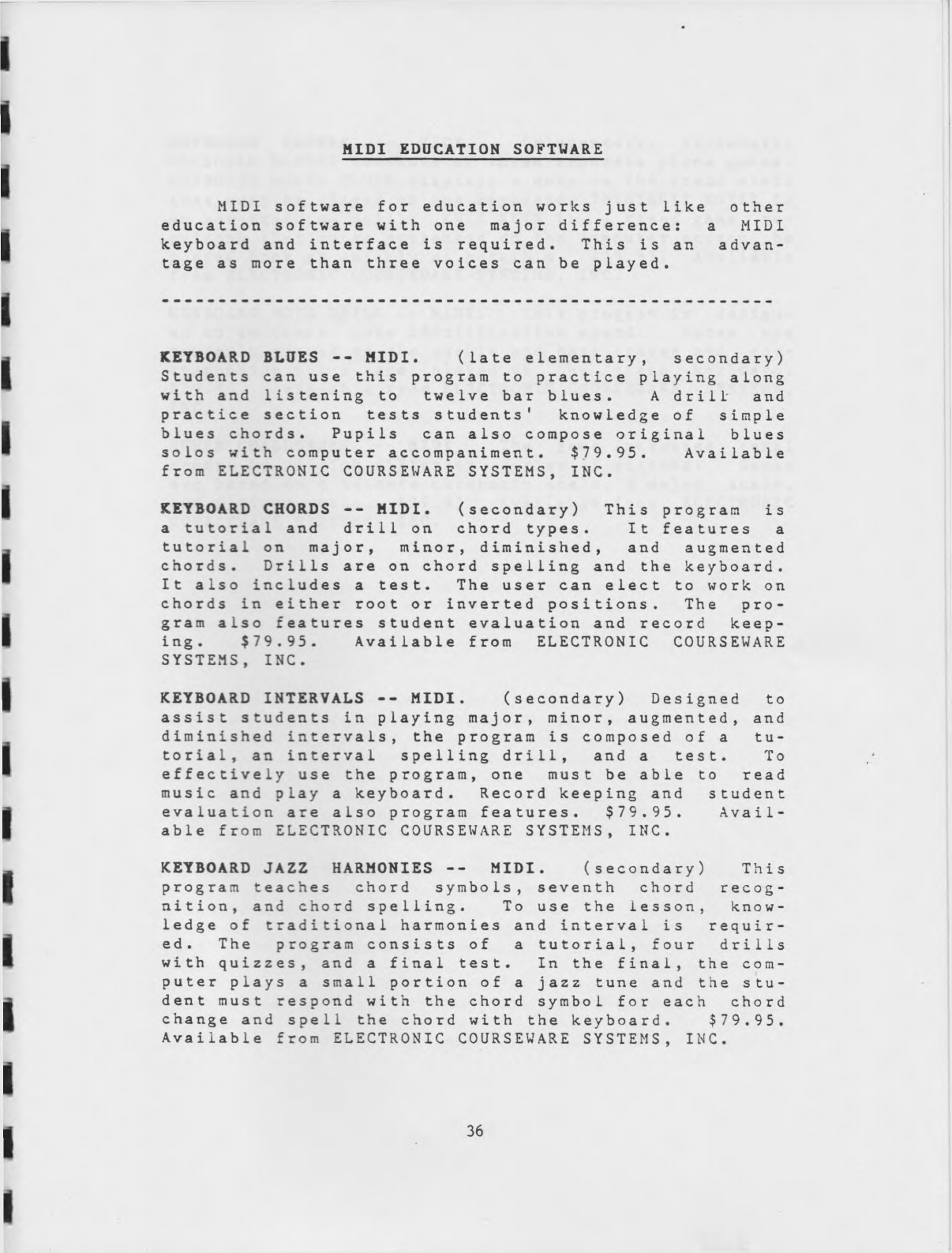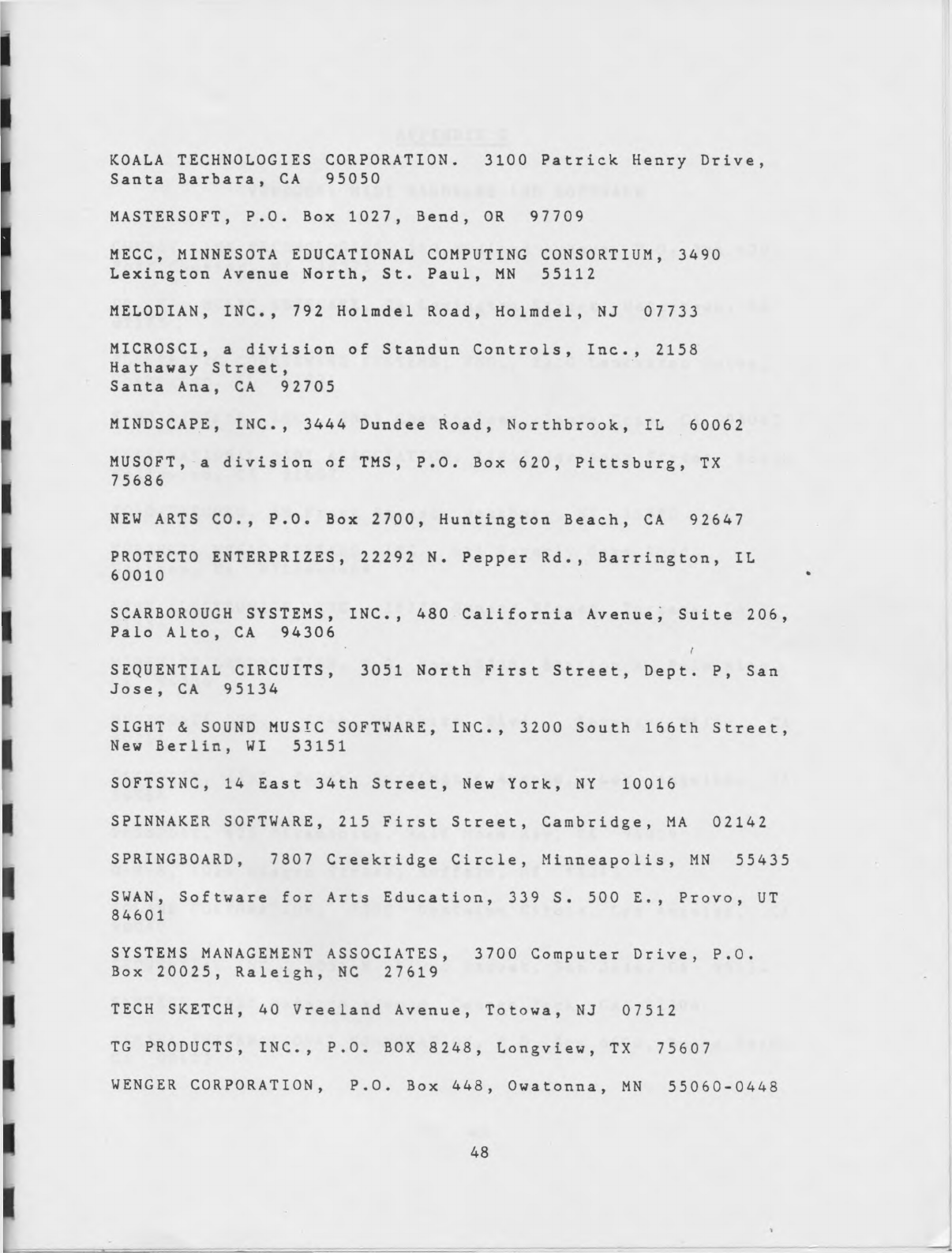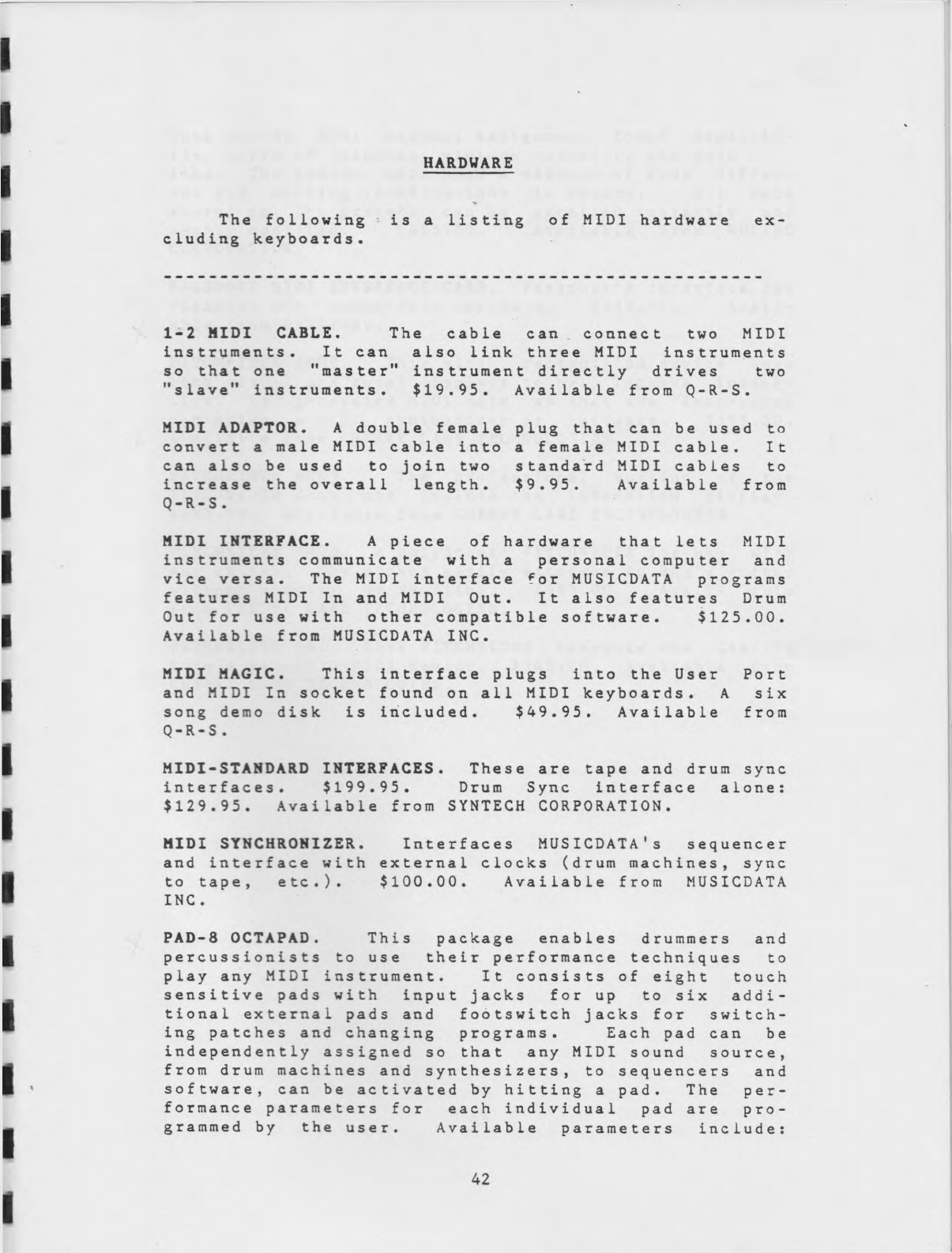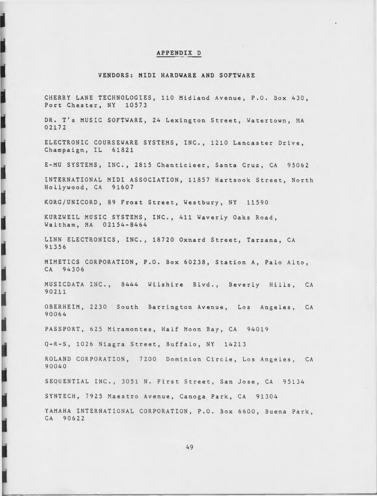 VENDORS: MIDI HARDWARE AND SOFTWARE