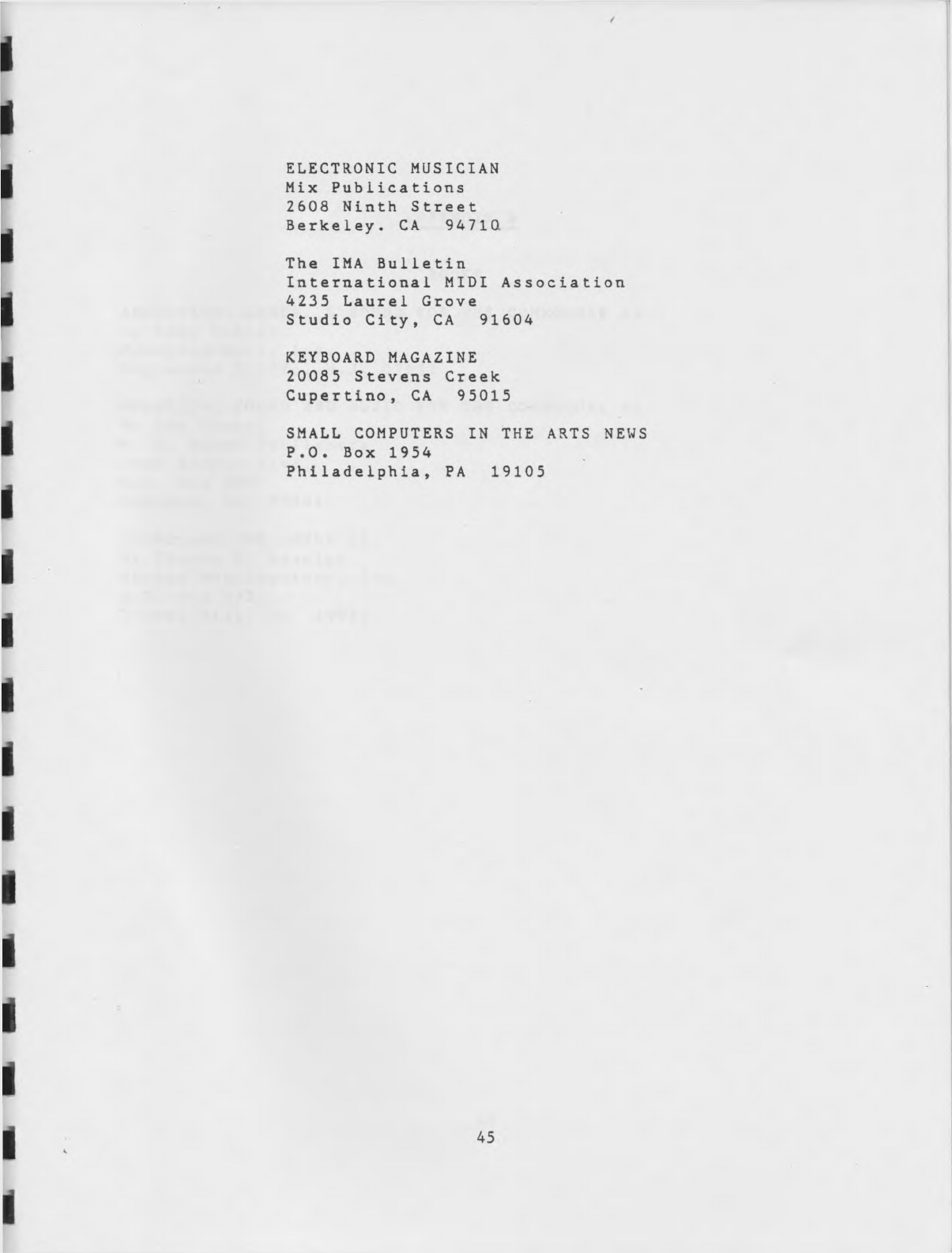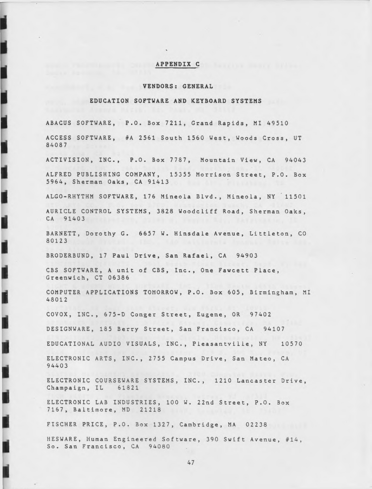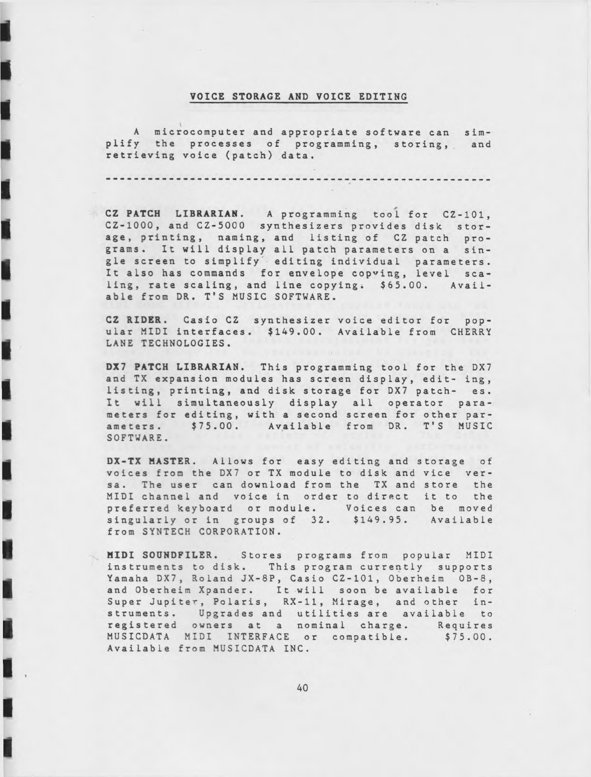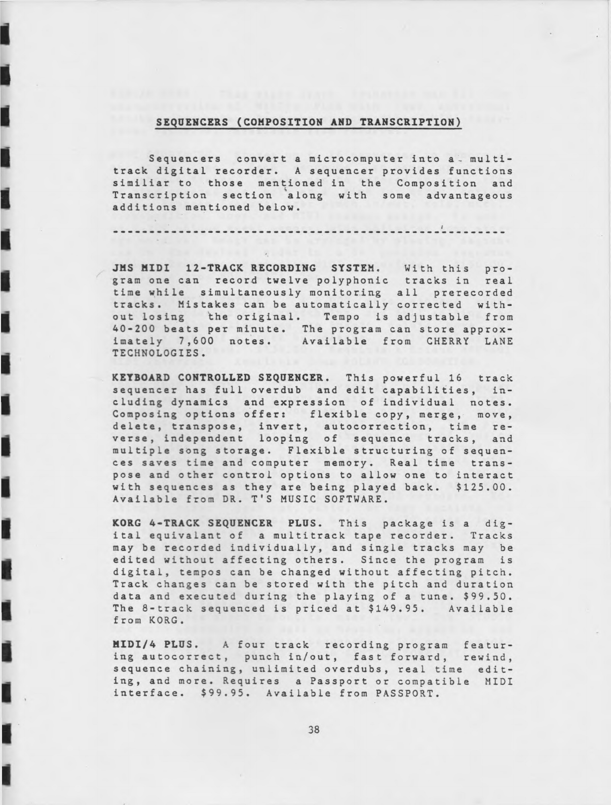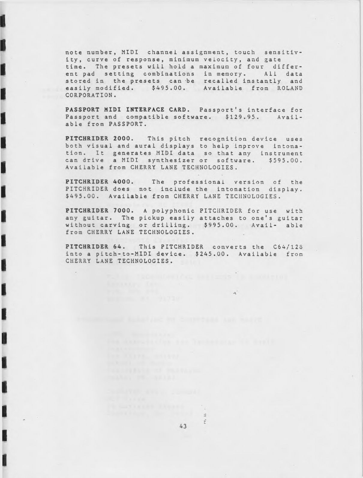 VENDORS: MIDI HARDWARE AND SOFTWARE