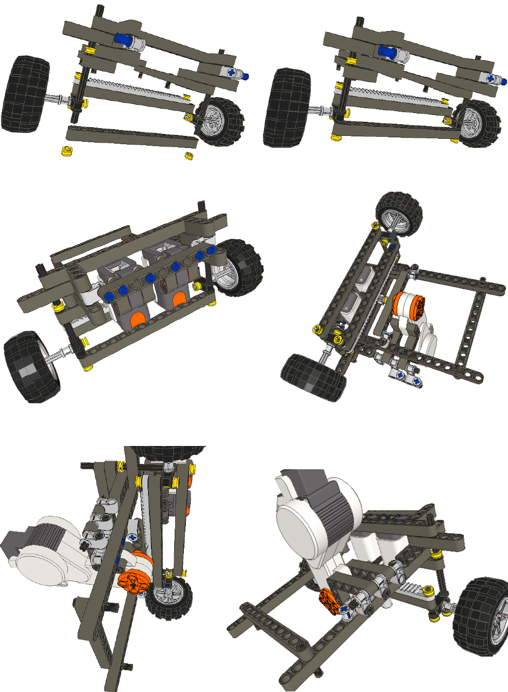 Take the chassis assembled earlier and attach the steering supports as shown, ensuring that they are the correct