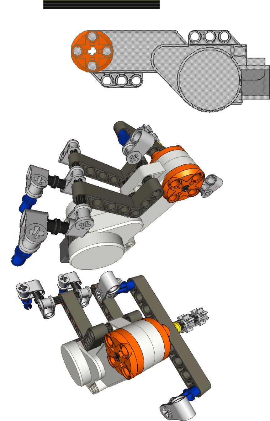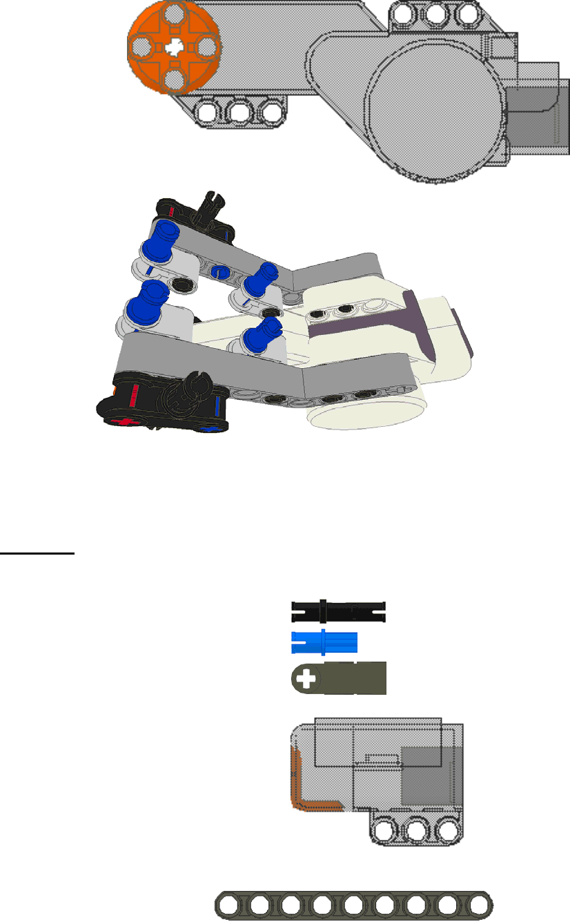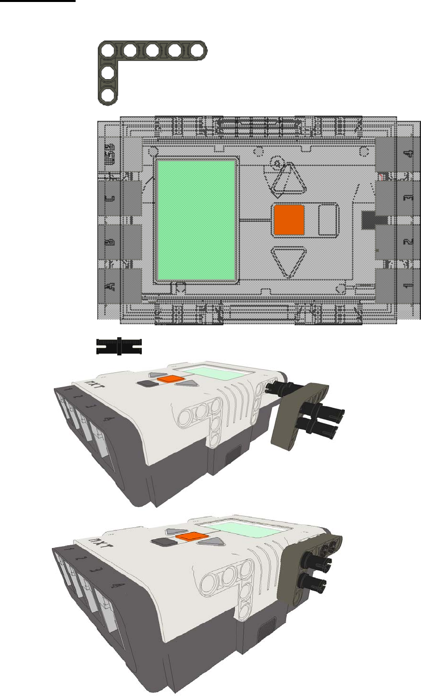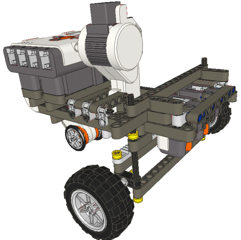 Orientate the NXT block to connect with both the steer servo motor and the chassis as shown below.