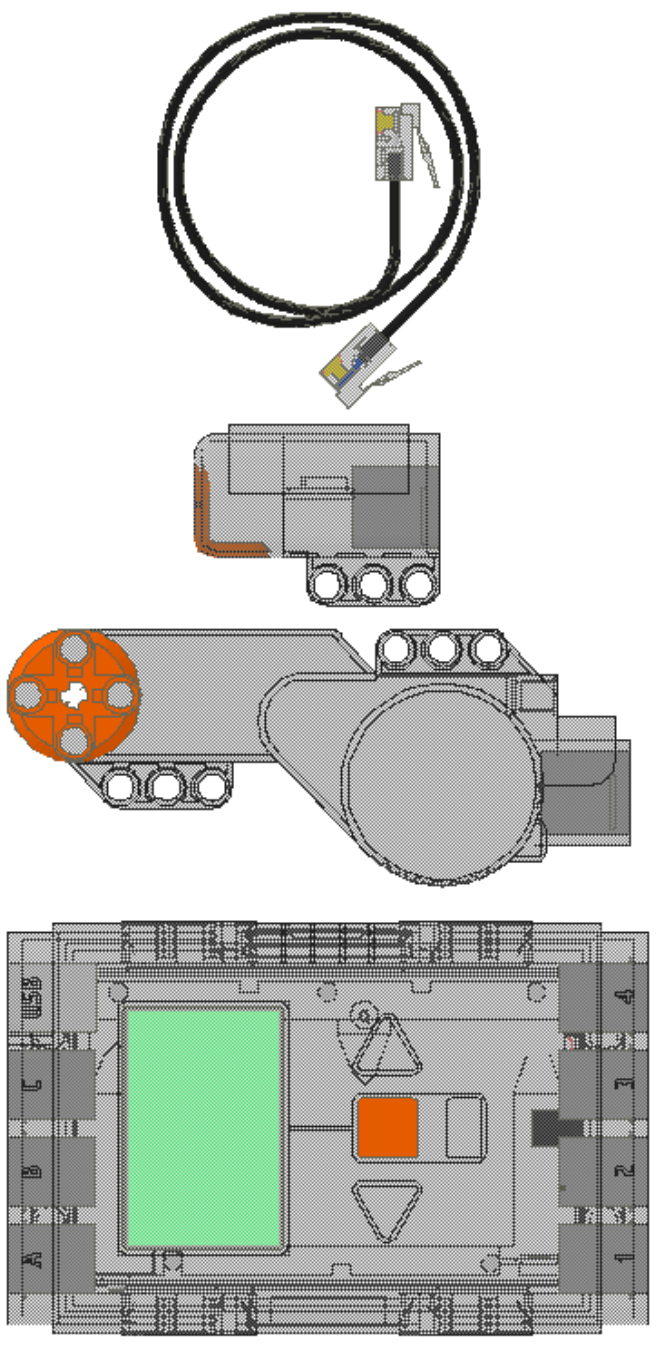 1. Connect the driving servo to port A on the NXT brick.