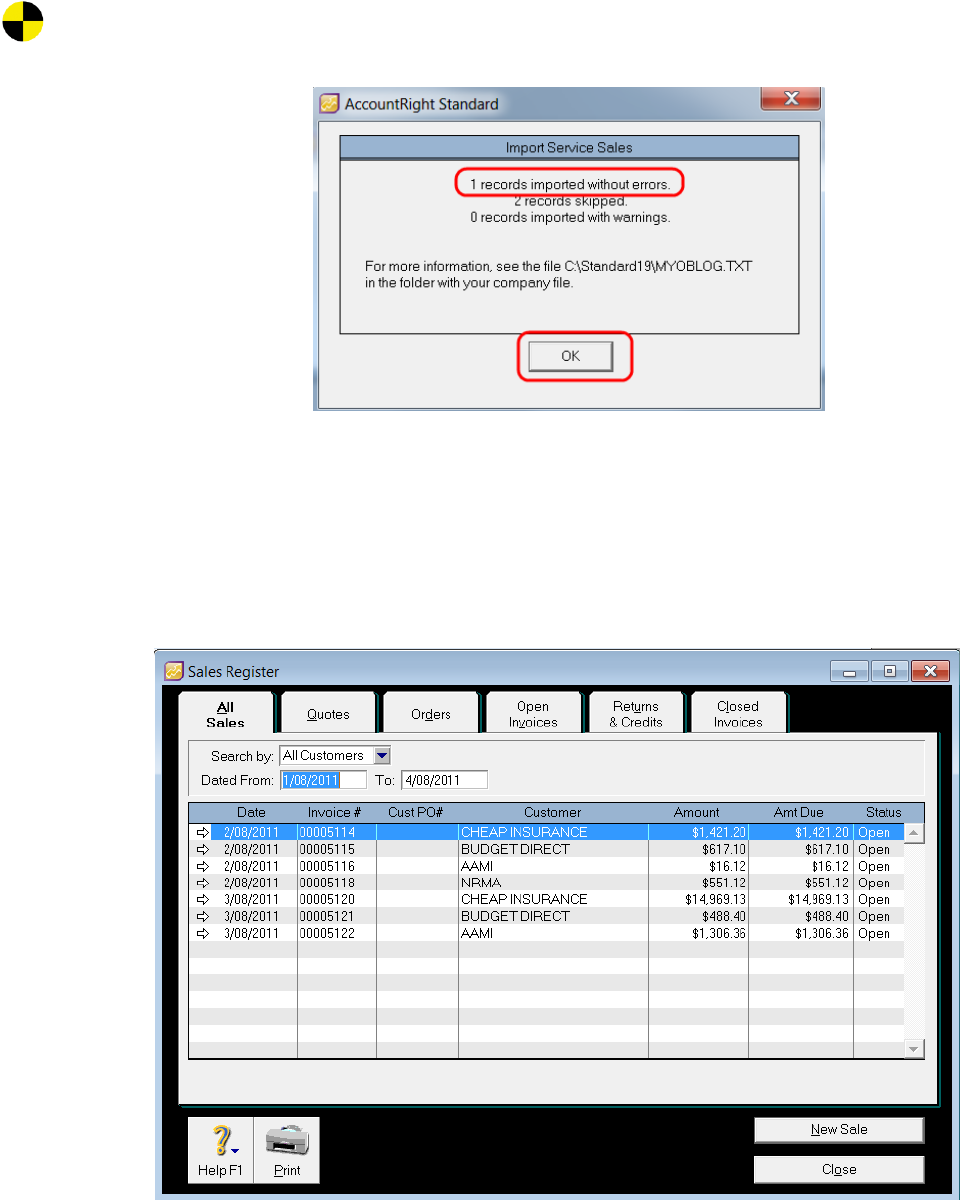 having trouble importing invoices should refer to the MYOB log file and consult with your accountant