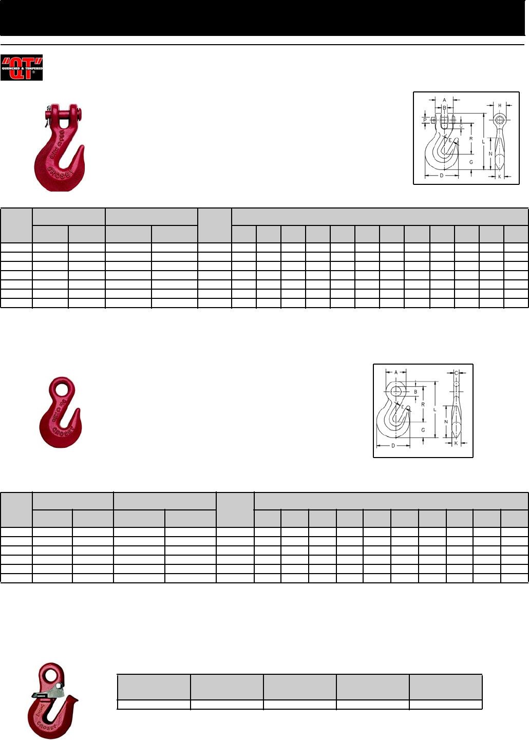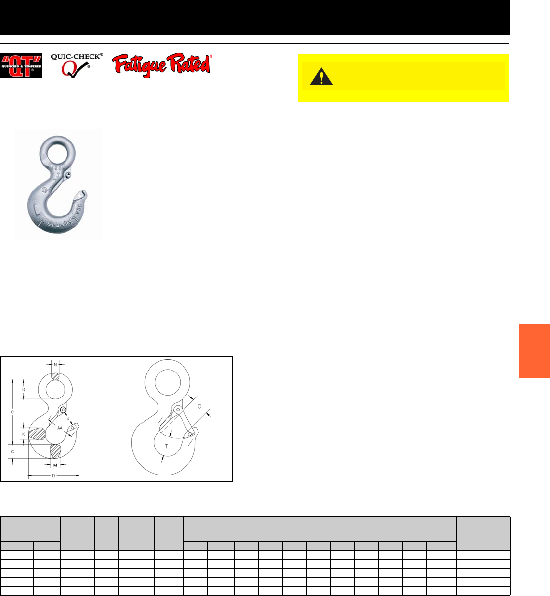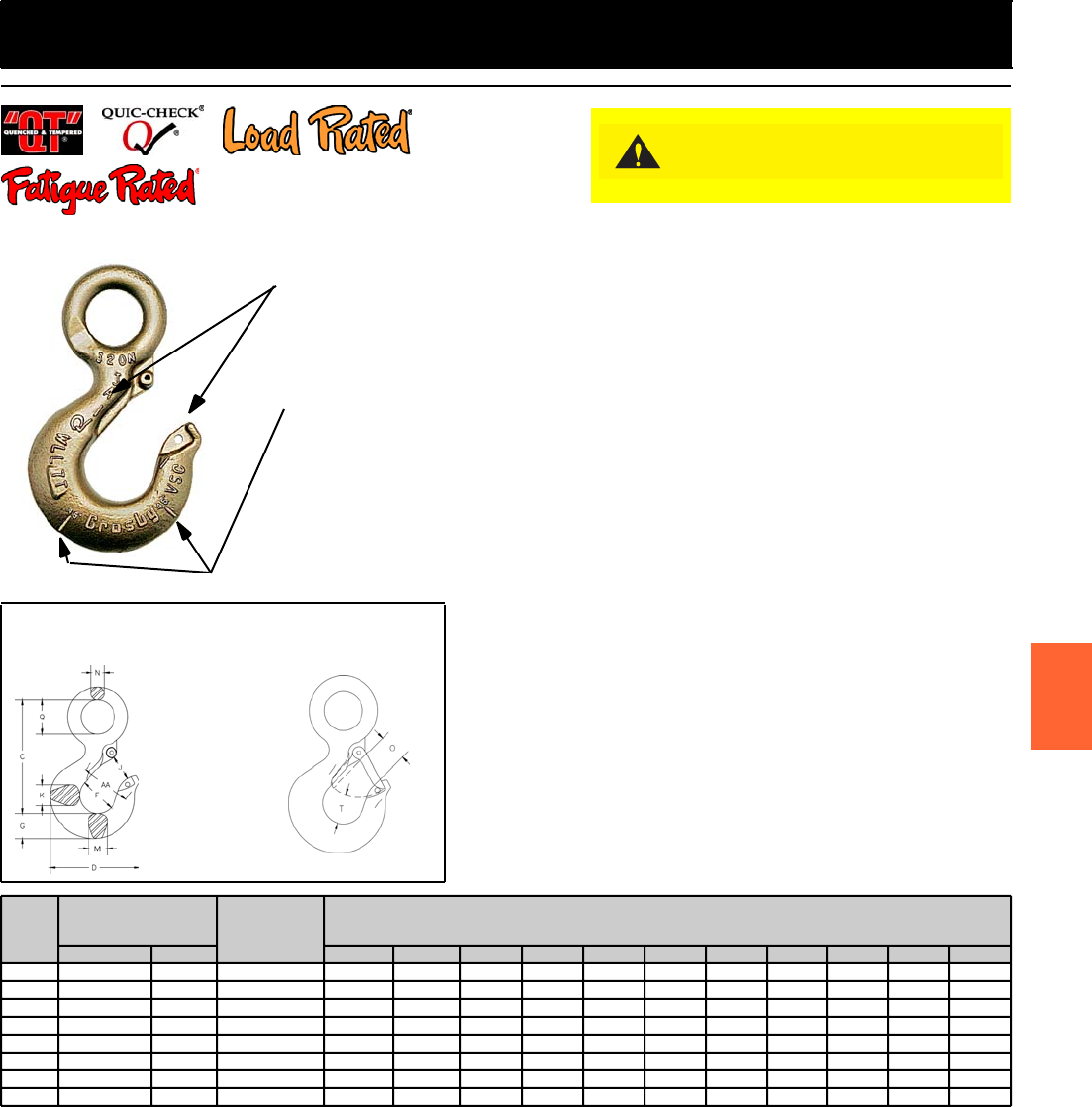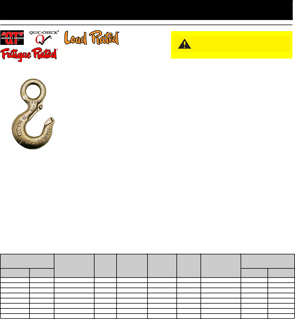 •See ANSI/ASME B30.10 “Hooks” for additional