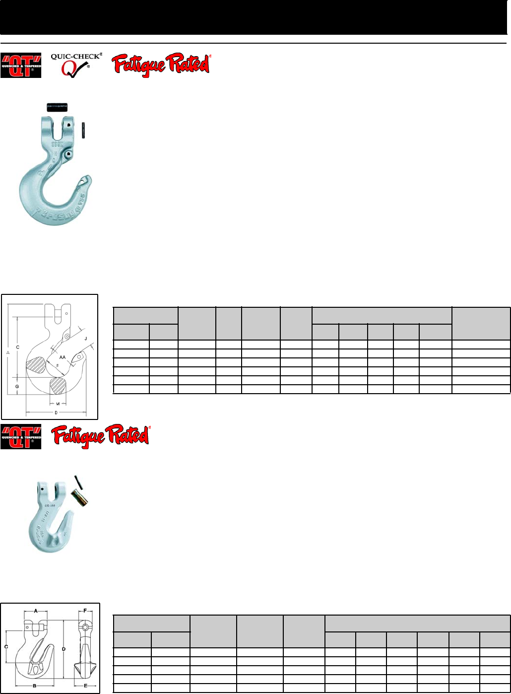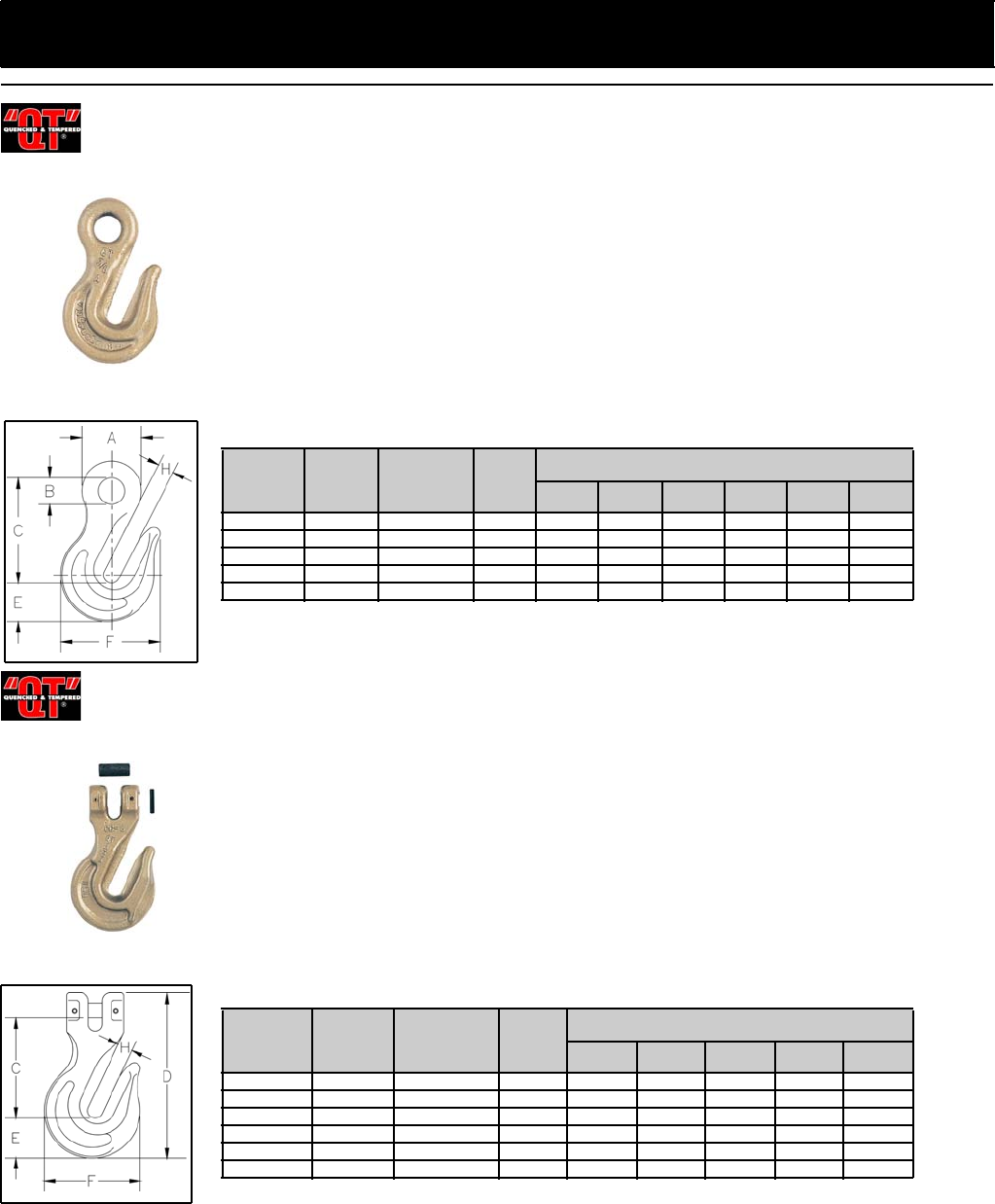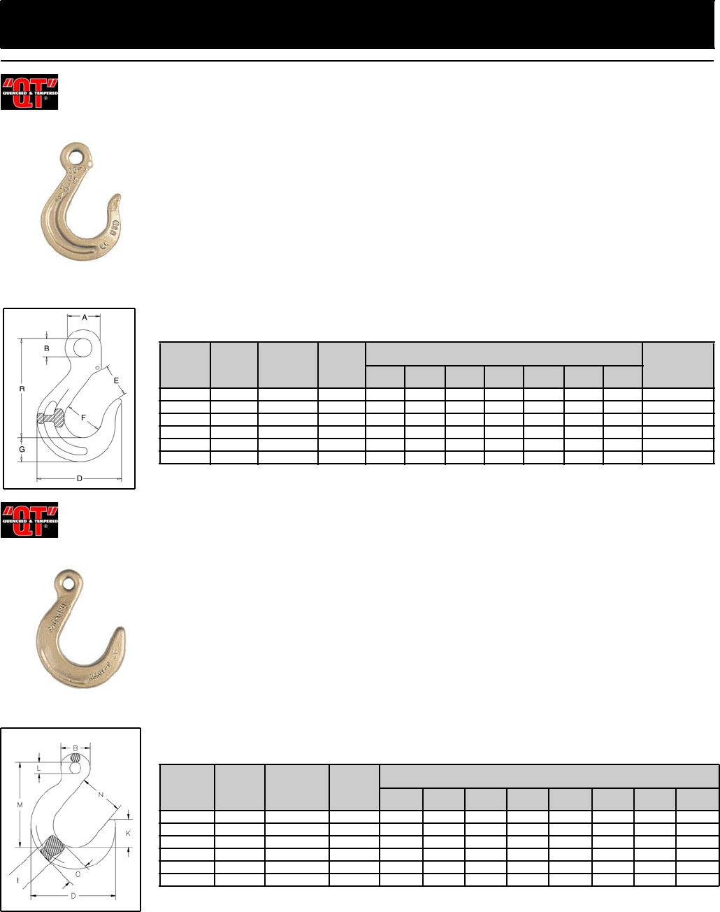 •See ANSI/ASME B30.10 “Hooks” for additional