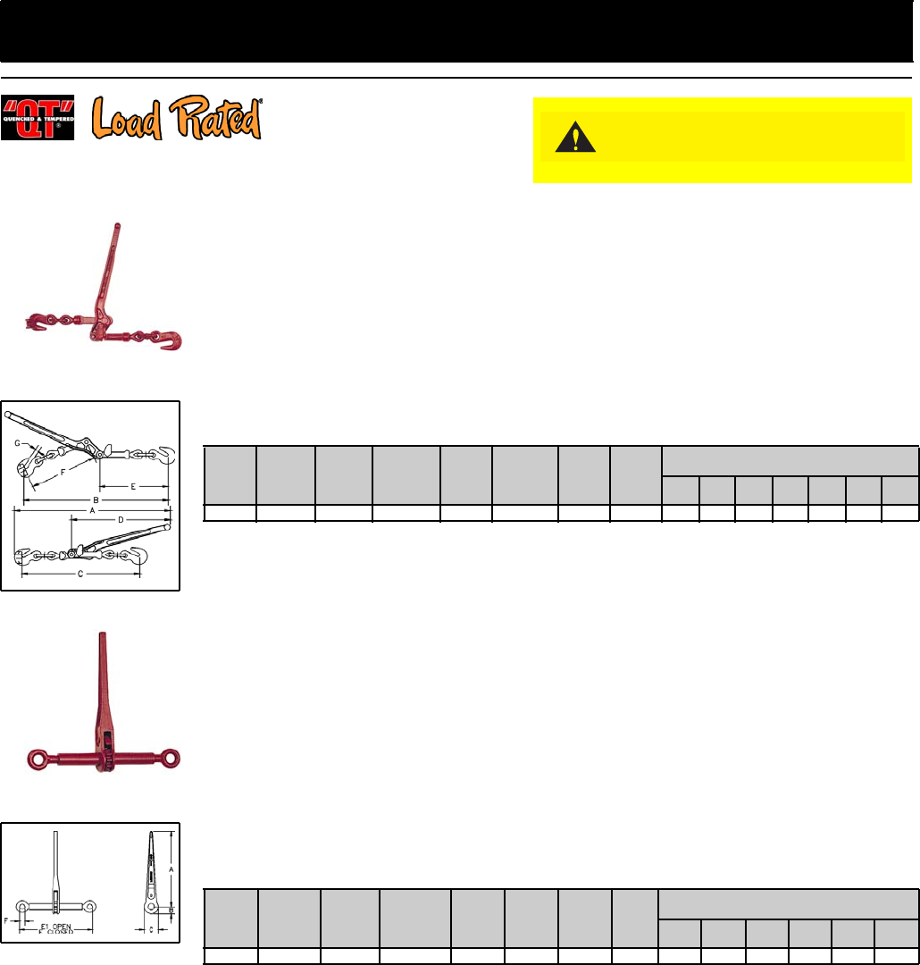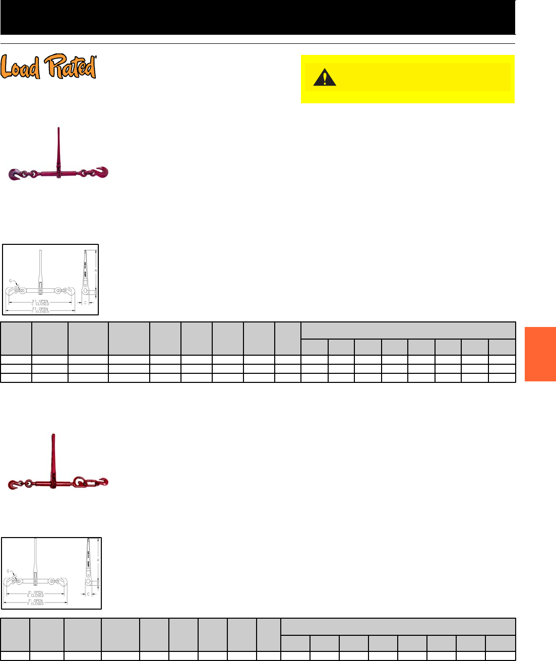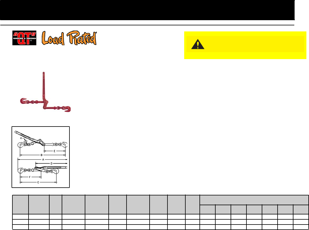 ** Ultimate Load is 4 times the Working Load Limit based on Grade 80 or Grade 100 Chain.