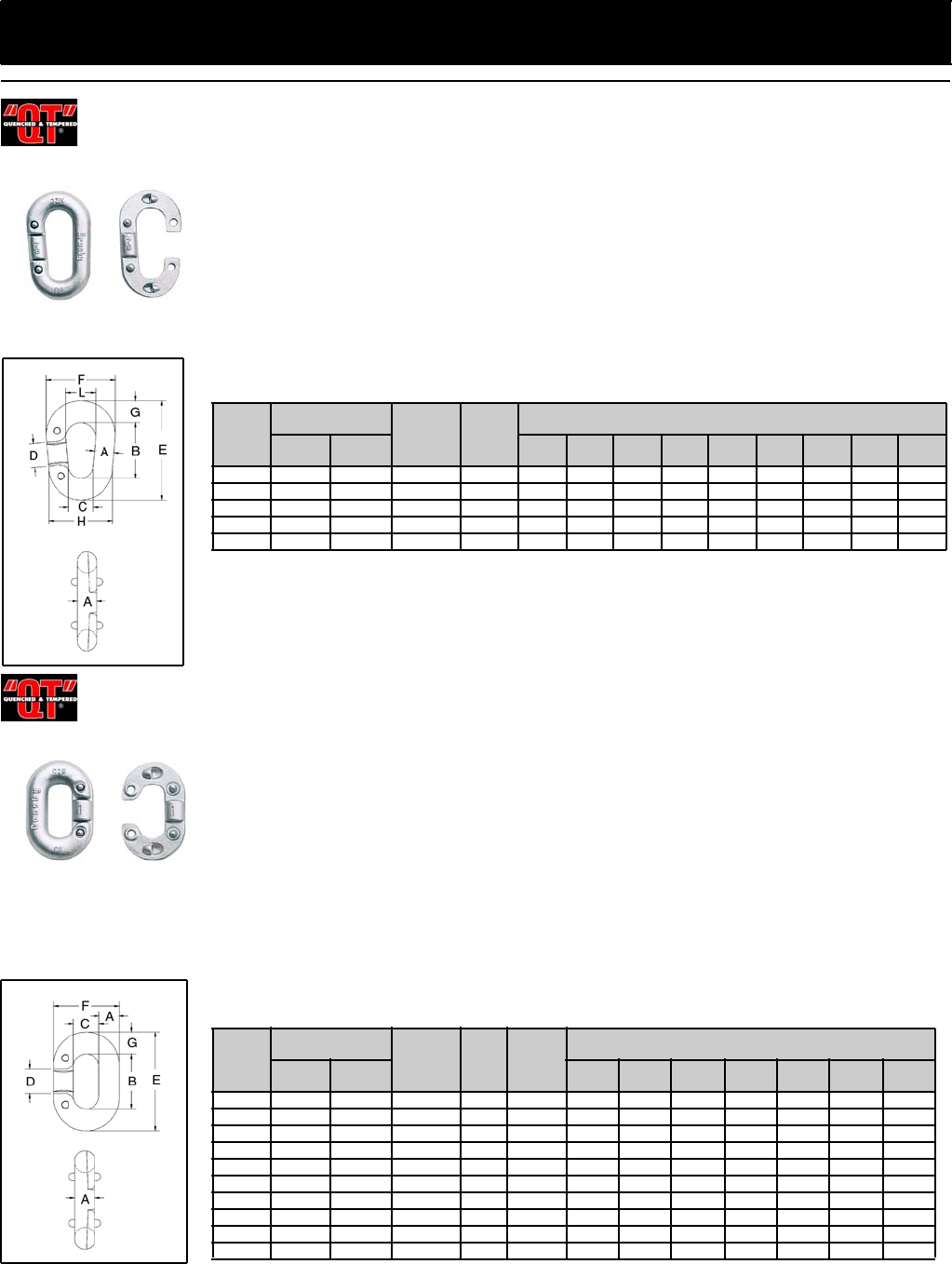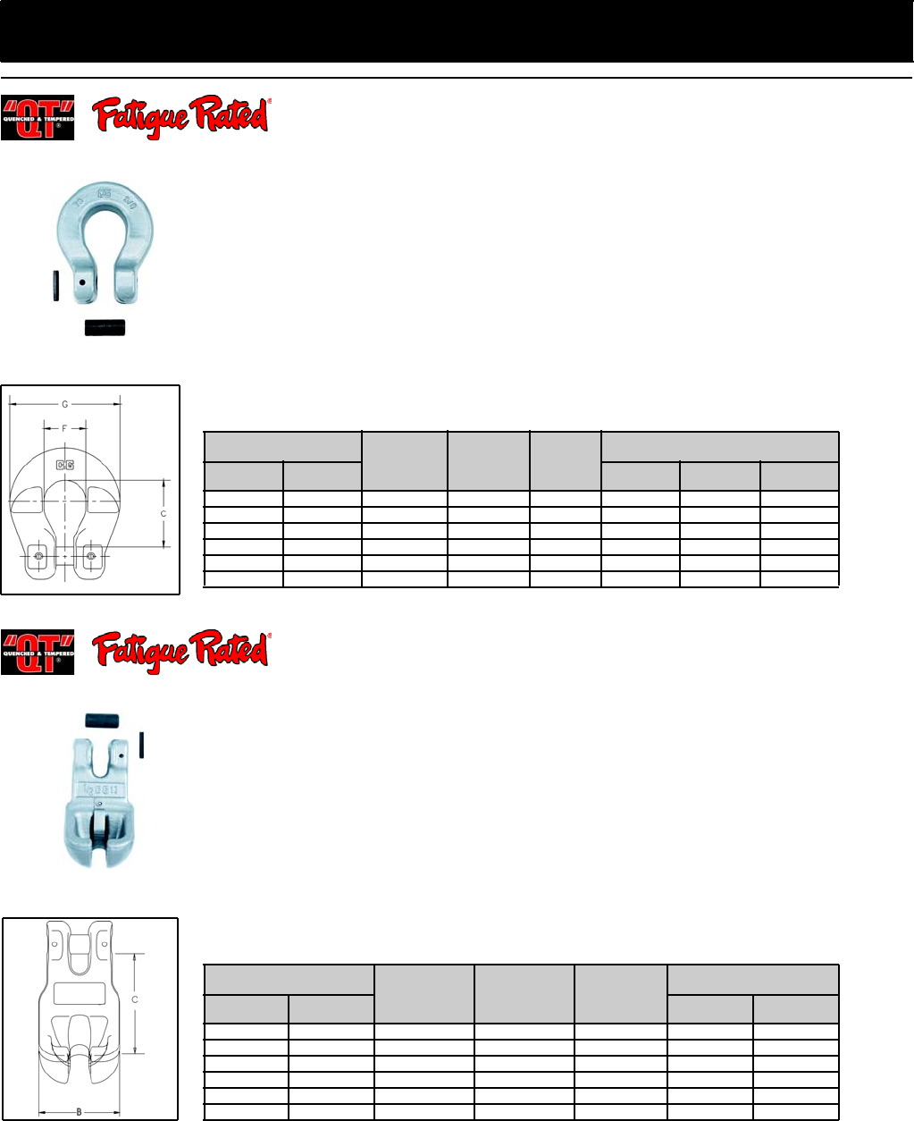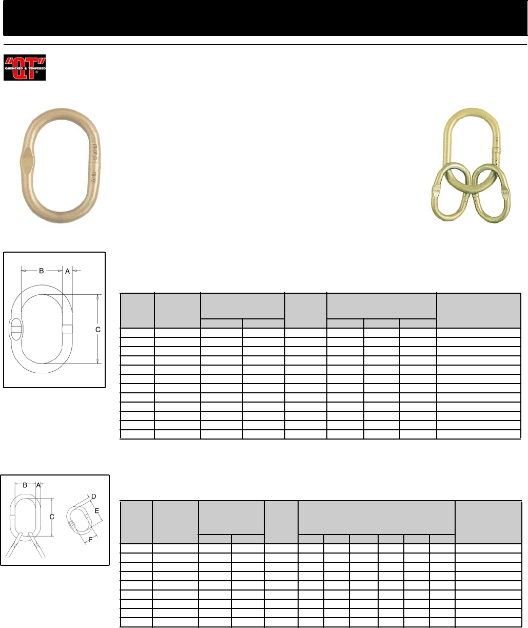 ** Ultimate Load is 4 times the Working Load Limit based on Grade 80 or Grade 100 Chain.