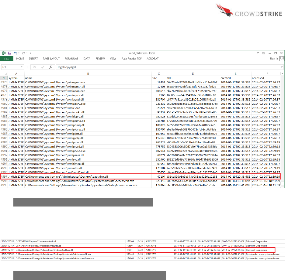 • Use the created and modified timestamps of the malware obtained from the DirList