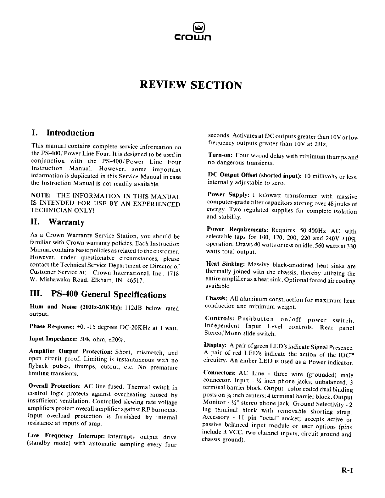 The Crown_PS 400_Power_Amplifier_Service_Manual Crown PS 400 Power Amplifier Service Manual