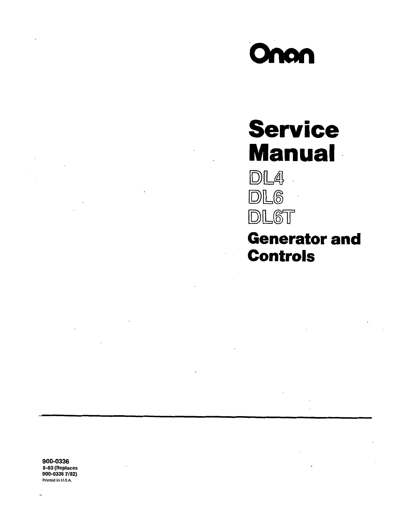 900-0336 Onan DL4 DL6 DL6T Genset Generator & Controls Service manual (08-1983) 900-0336 Onan DL4 DL6 DL6T Genset Generator & Controls Service manual (08-1983)