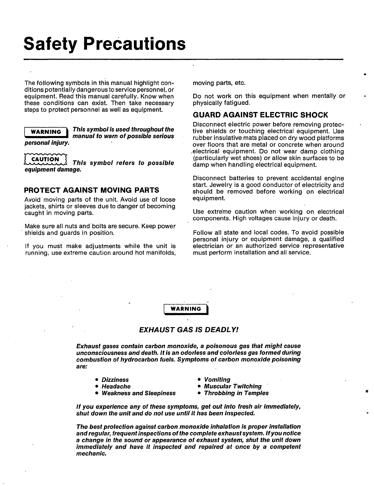 Exhaust gases contain carbon monoxide, a poisonous gas that might cause