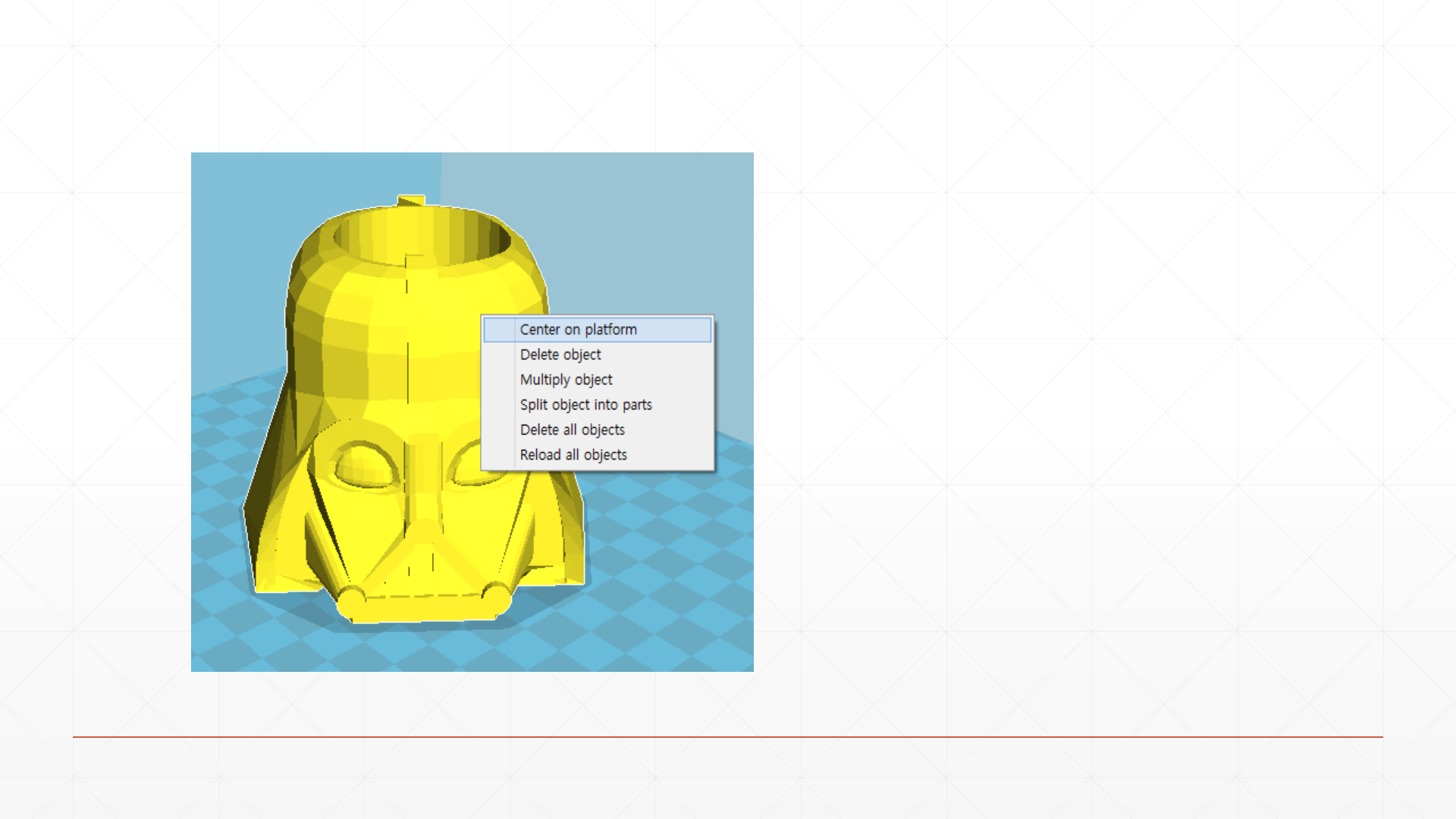Cut off object bottom : 모델의 하층을 제거(모델의 바닥이 평평하지 않을 때 적용함)