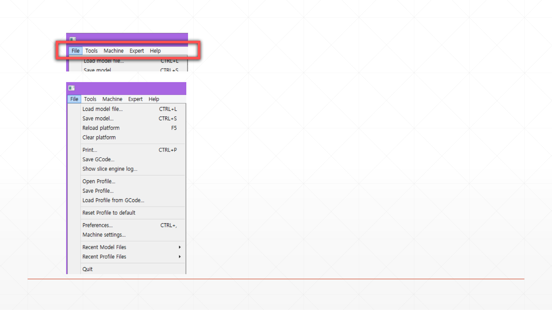 Show slice engine log : 슬라이스 정보창을 불러옴