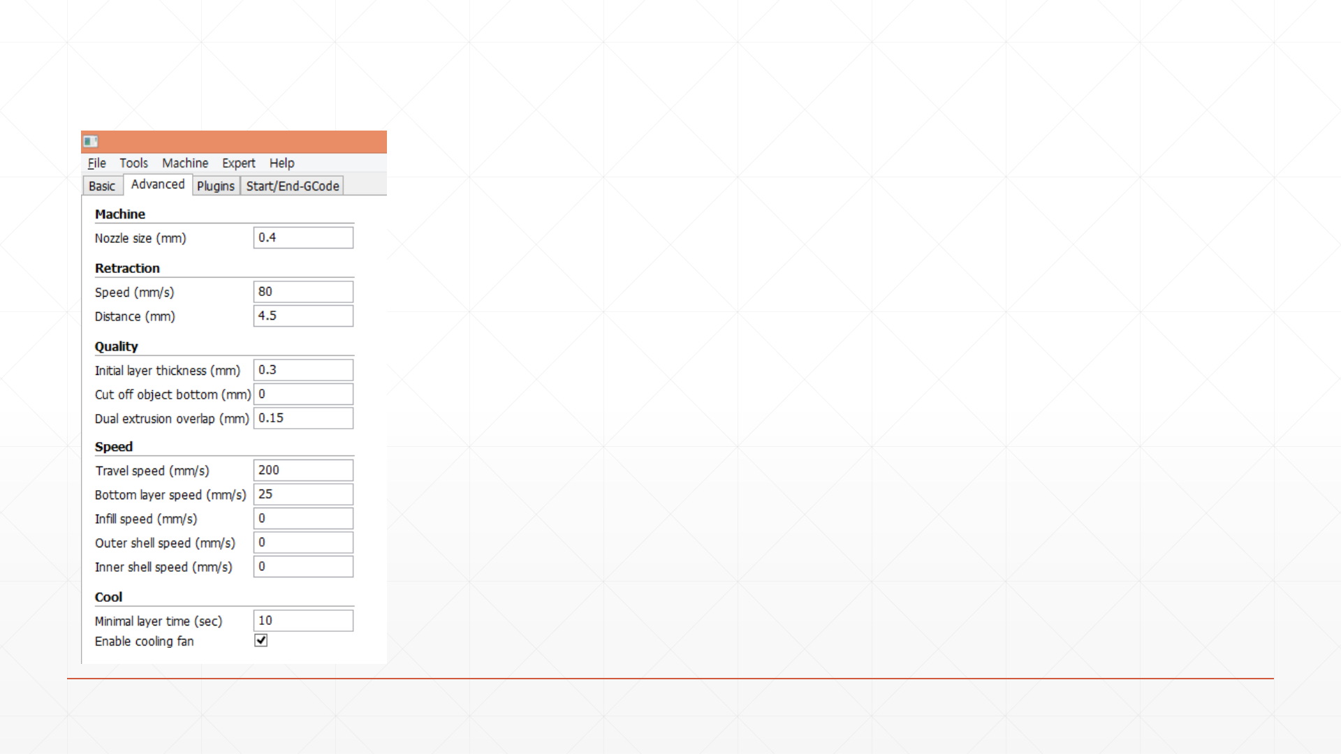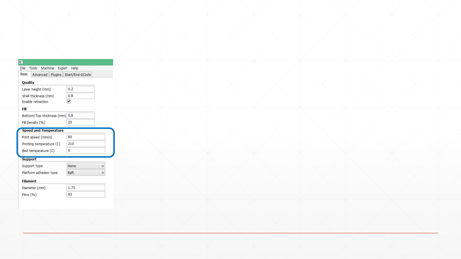 Speed & Temperature> Print speed(인쇄속도)