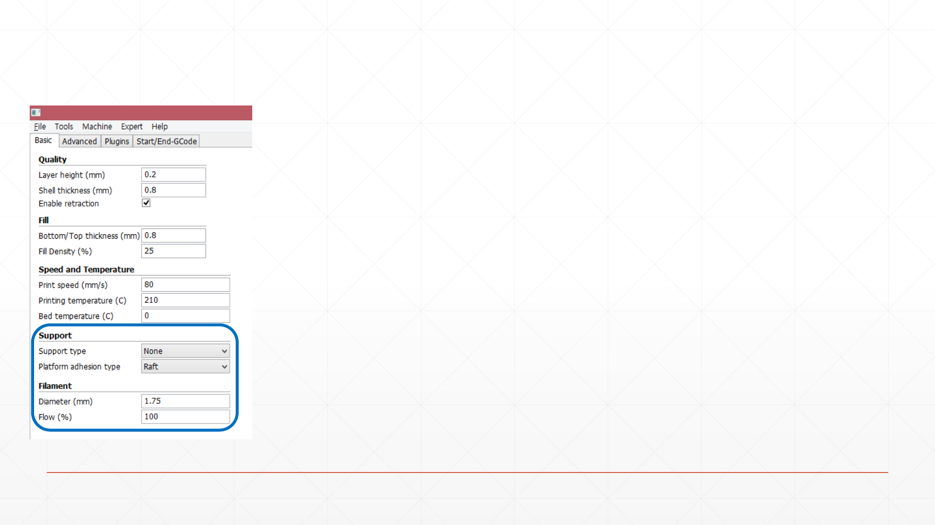 Interface의 두께, 폭을 작게 주면 raft를 모델에서 떼어내기 쉬움.