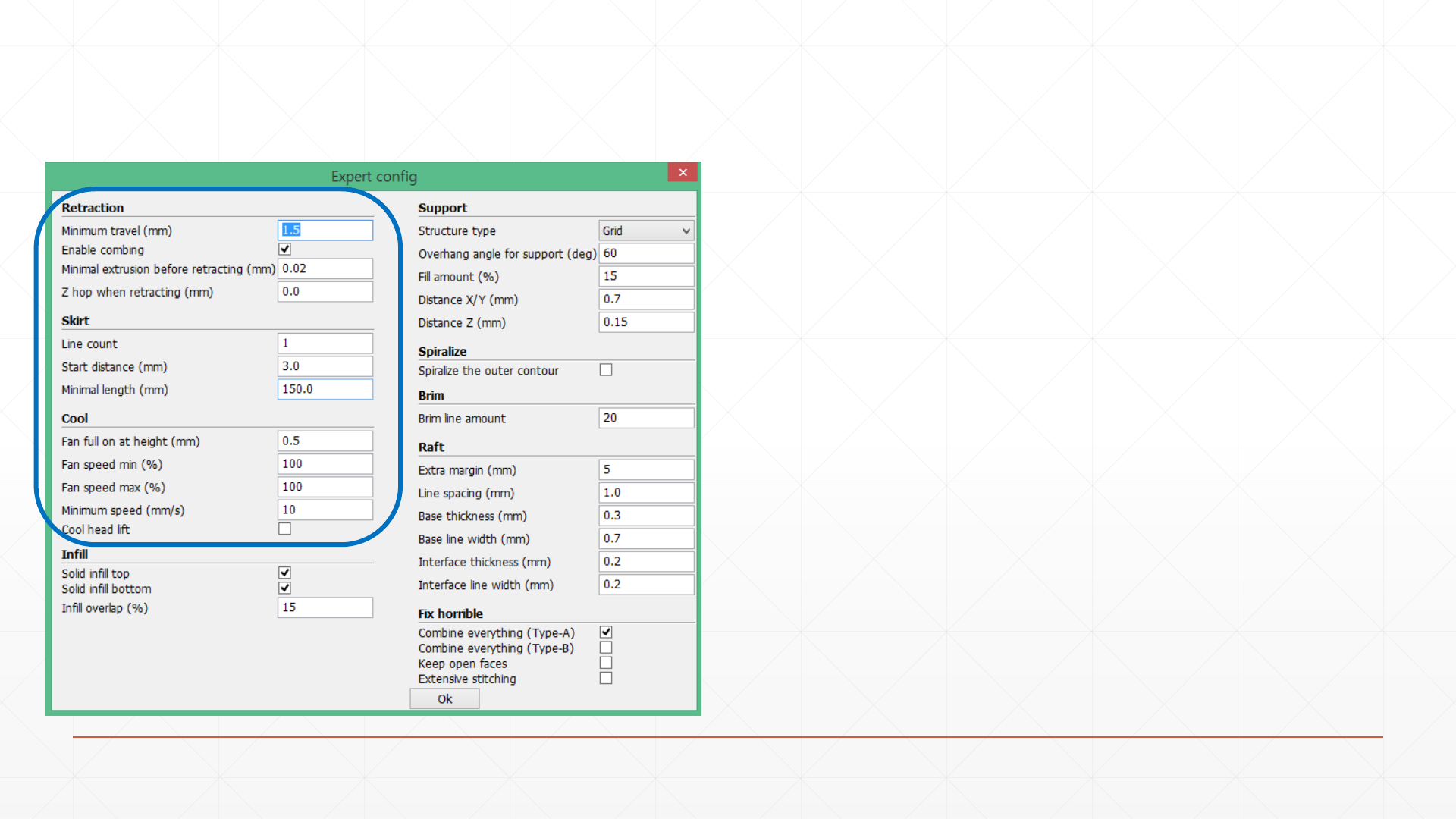 Quality>Enable retraction