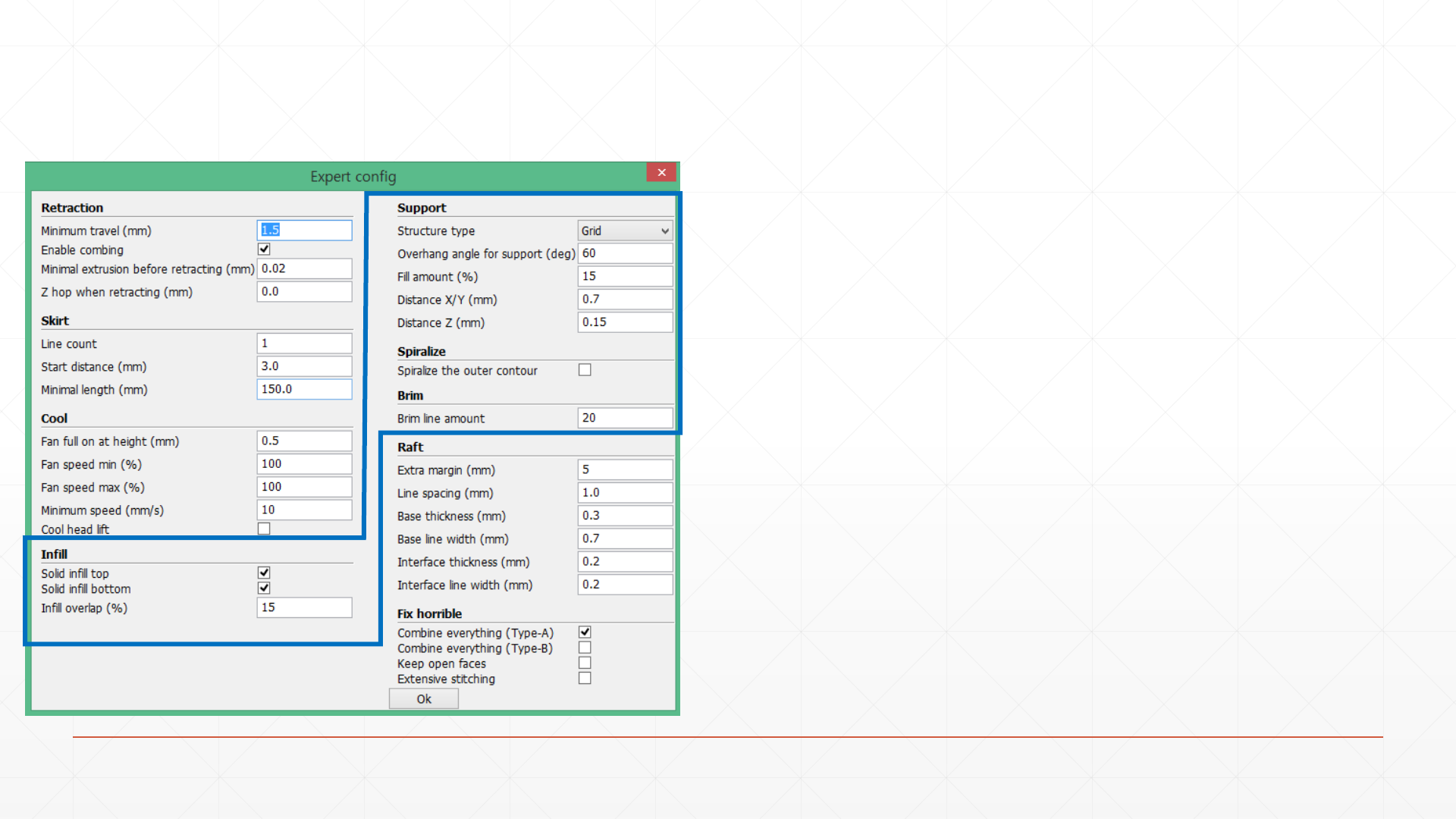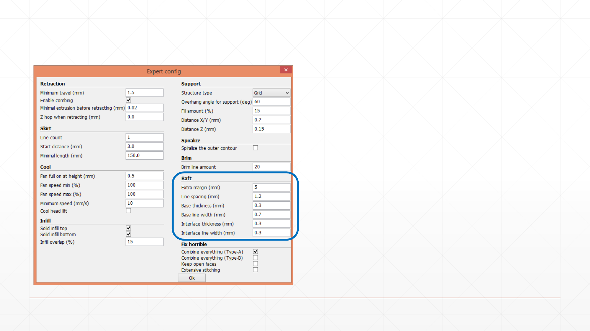 Base : bed에 붙는 바닥면, interface : raft와 모델 경계면