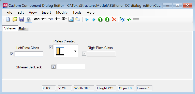 - Example: Modifying the dialog box of a stiffener detail