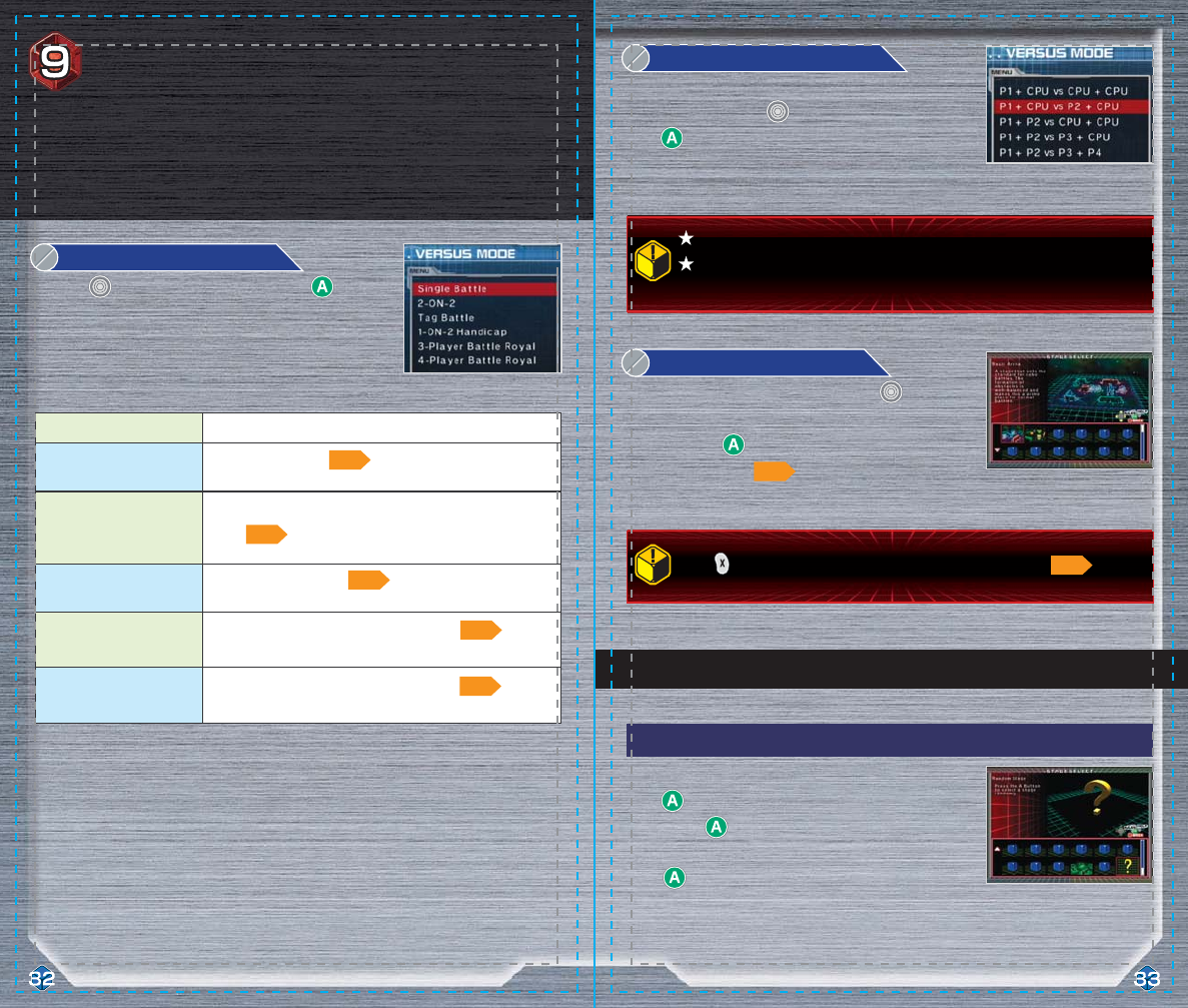 Here are explanations of special battle types that appear in The Grand Battle and Vs. mode.