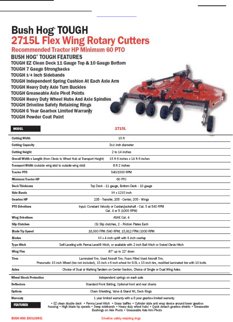 All materials, equipment, and/or services bid upon must comply with the following specification “Bush Hog®