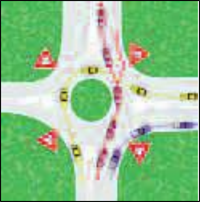 You must bear either right or left ahead. Slow down and stay alert to the flow of