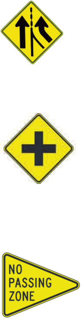Most warning signs are black and yellow and most are diamond shaped.