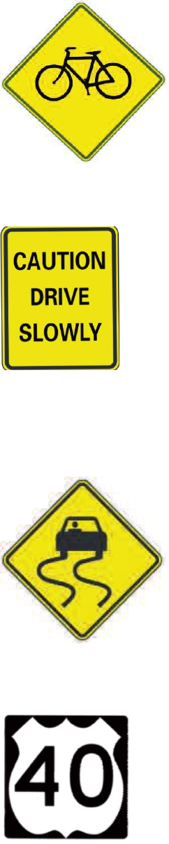 under other warning signs. Slow down to the advisory speed shown.