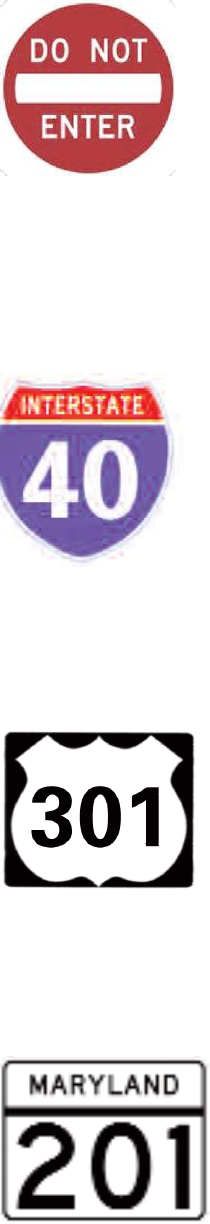 The interstate system has route markers in the shape of a shield. The top carries