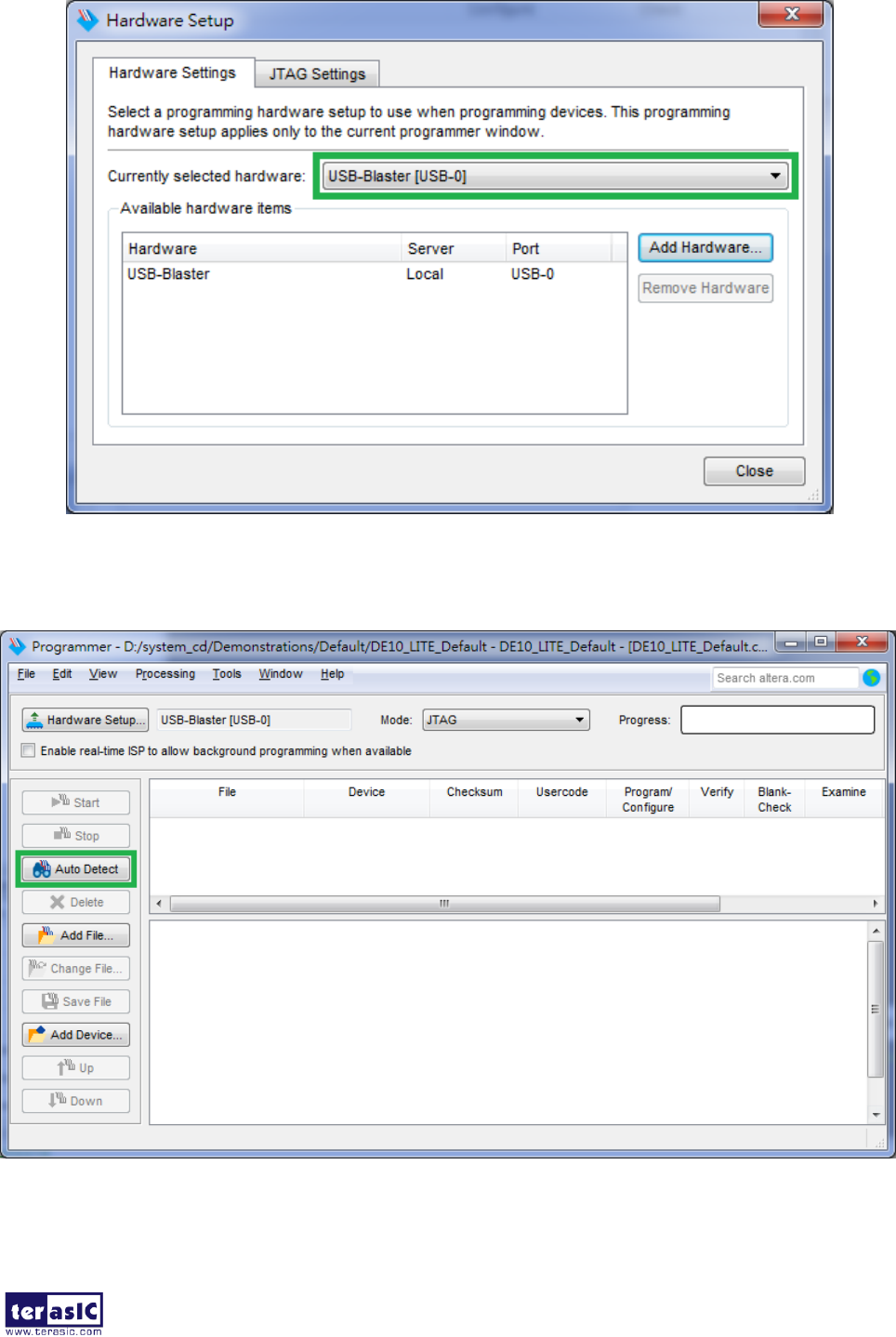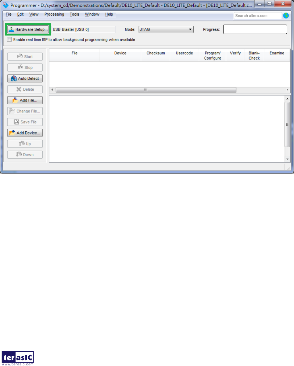 2. Click Hardware Setup and then select the USB-Blaster as shown in Figure 6-16.