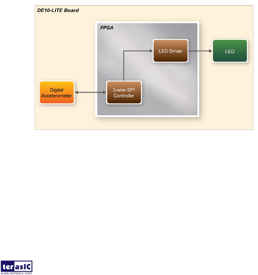 The DE10-Lite development board includes hardware such as on-board USB Blaster, 3-axis