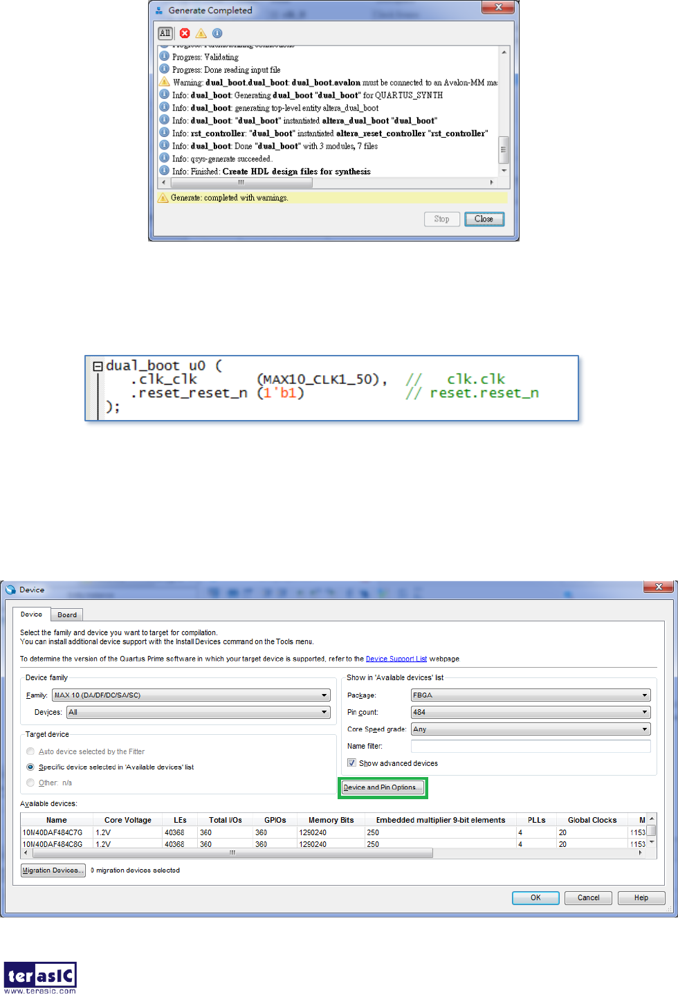 shown in Figure 6-10, and add the dual_boot.qip file to the project and save.