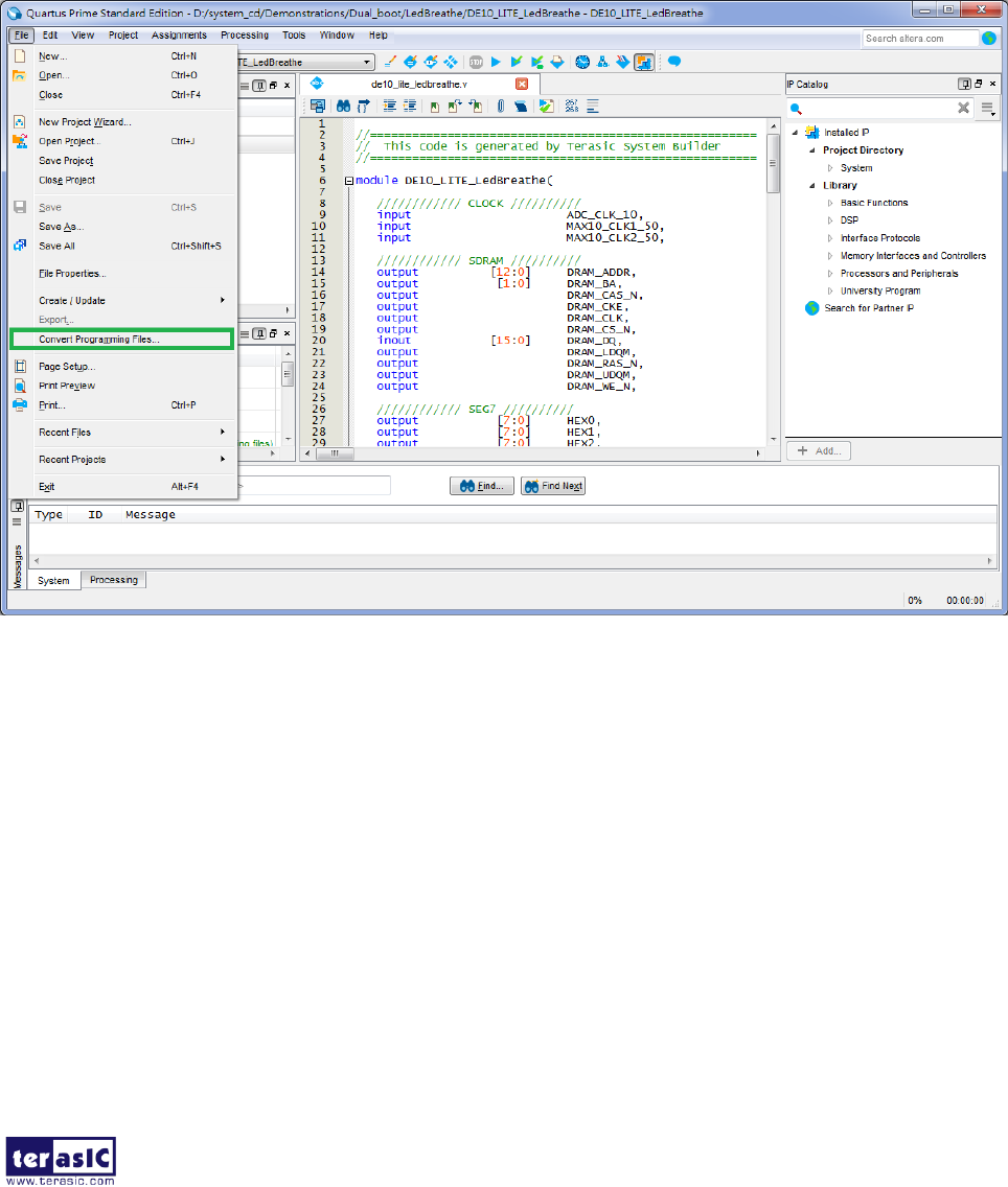 1. Choose Convert Programming Files from the File menu of Quartus II to open new window, as
