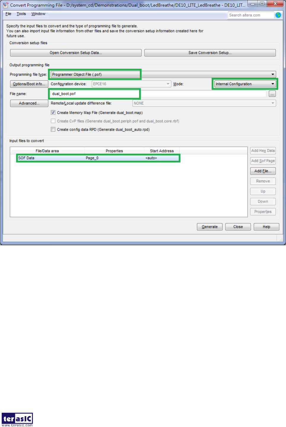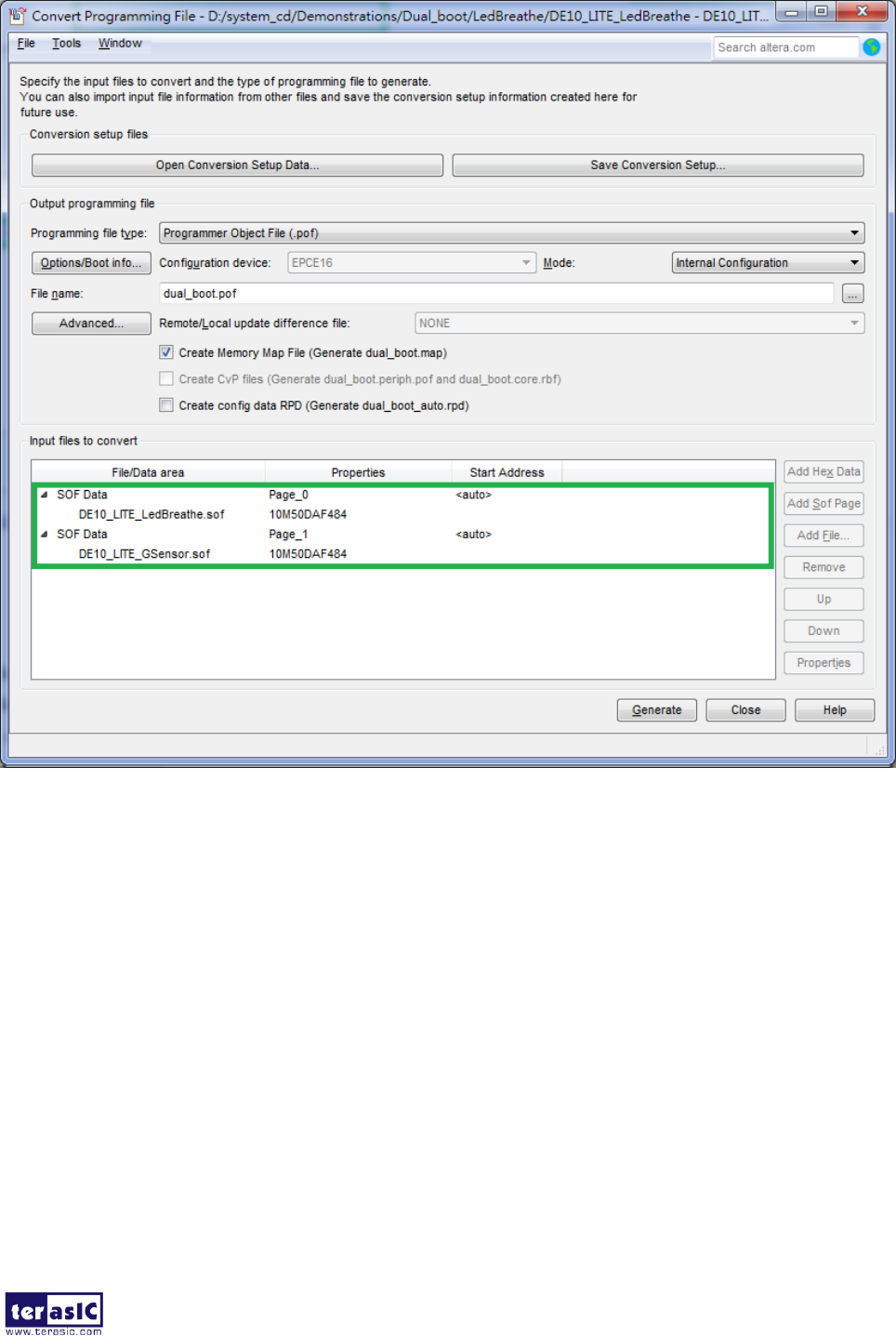 3. Click Add File and then select the dual_boot.pof.