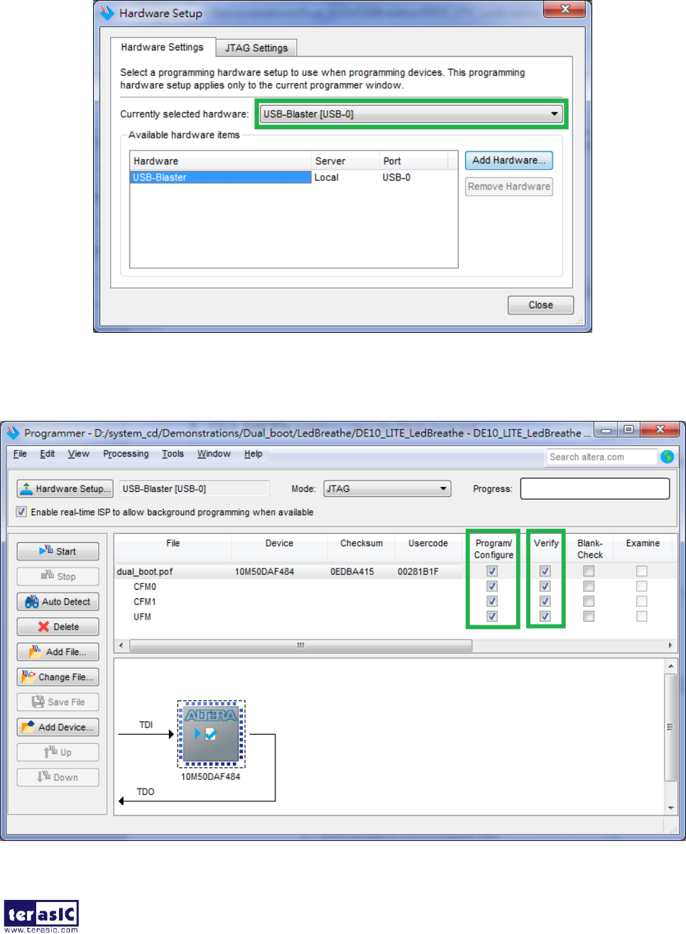 Figure 6-17 Programmer window with dual_boot.pof file