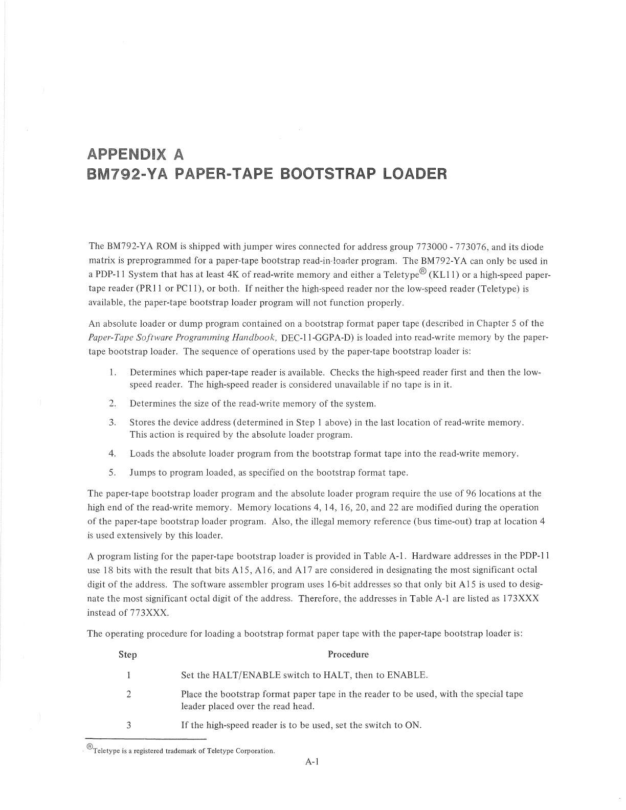 BM792-YA PAPER-TAPE BOOTSTRAP LOADER