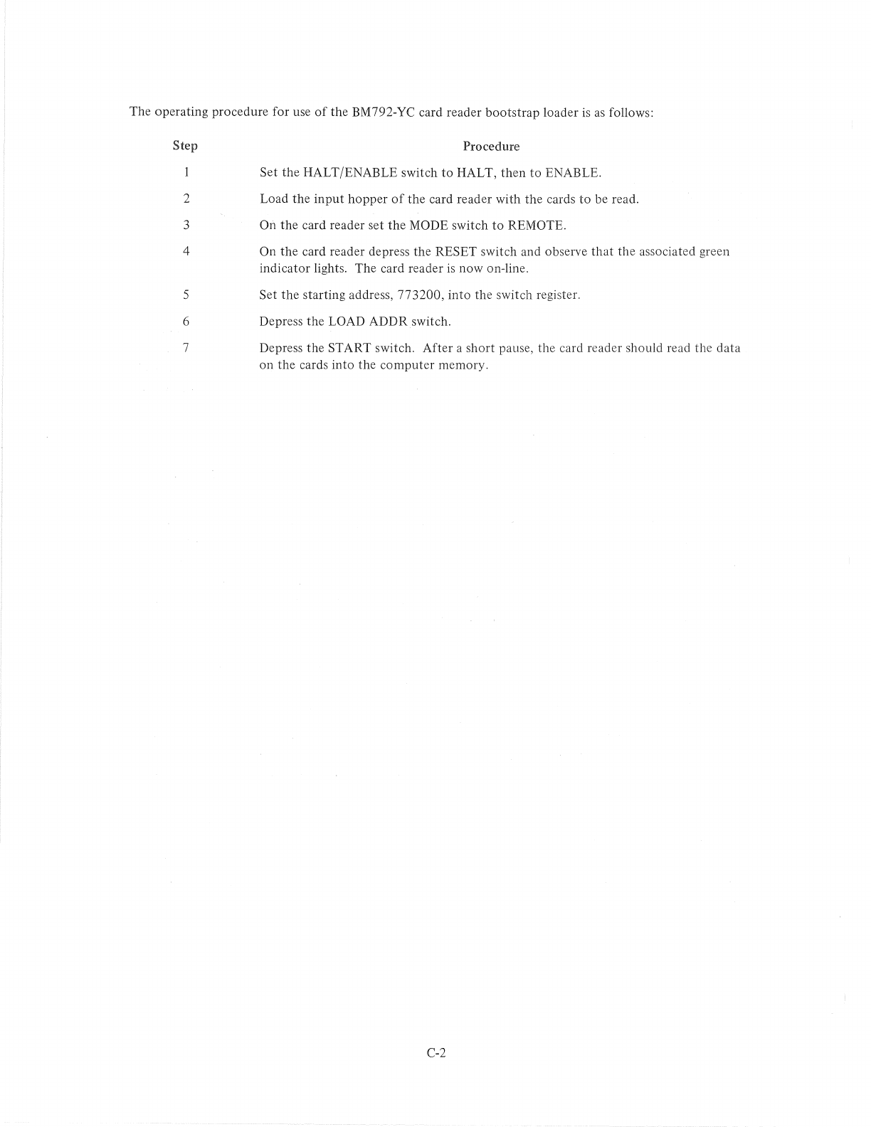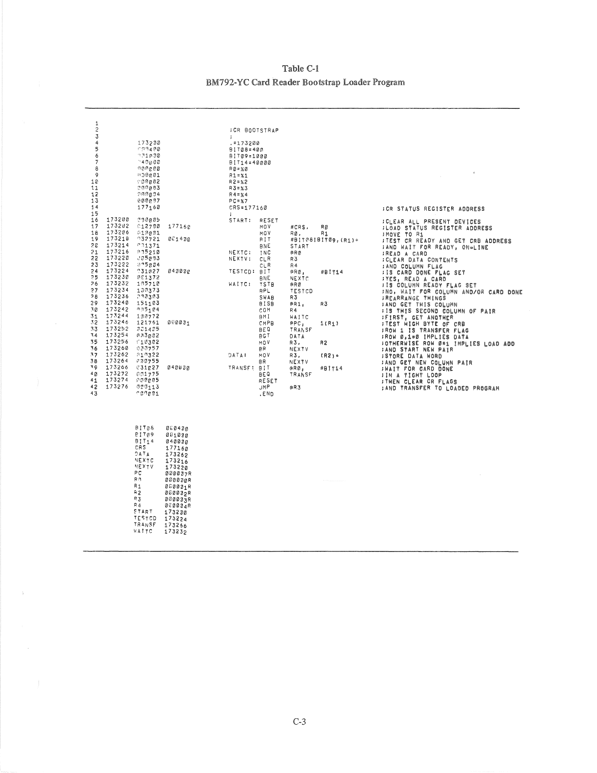 When started at address 773306, the BM792-YH program uses