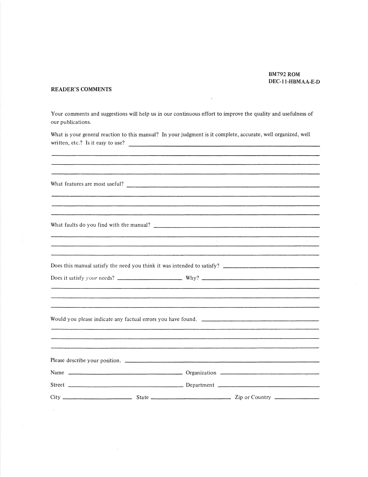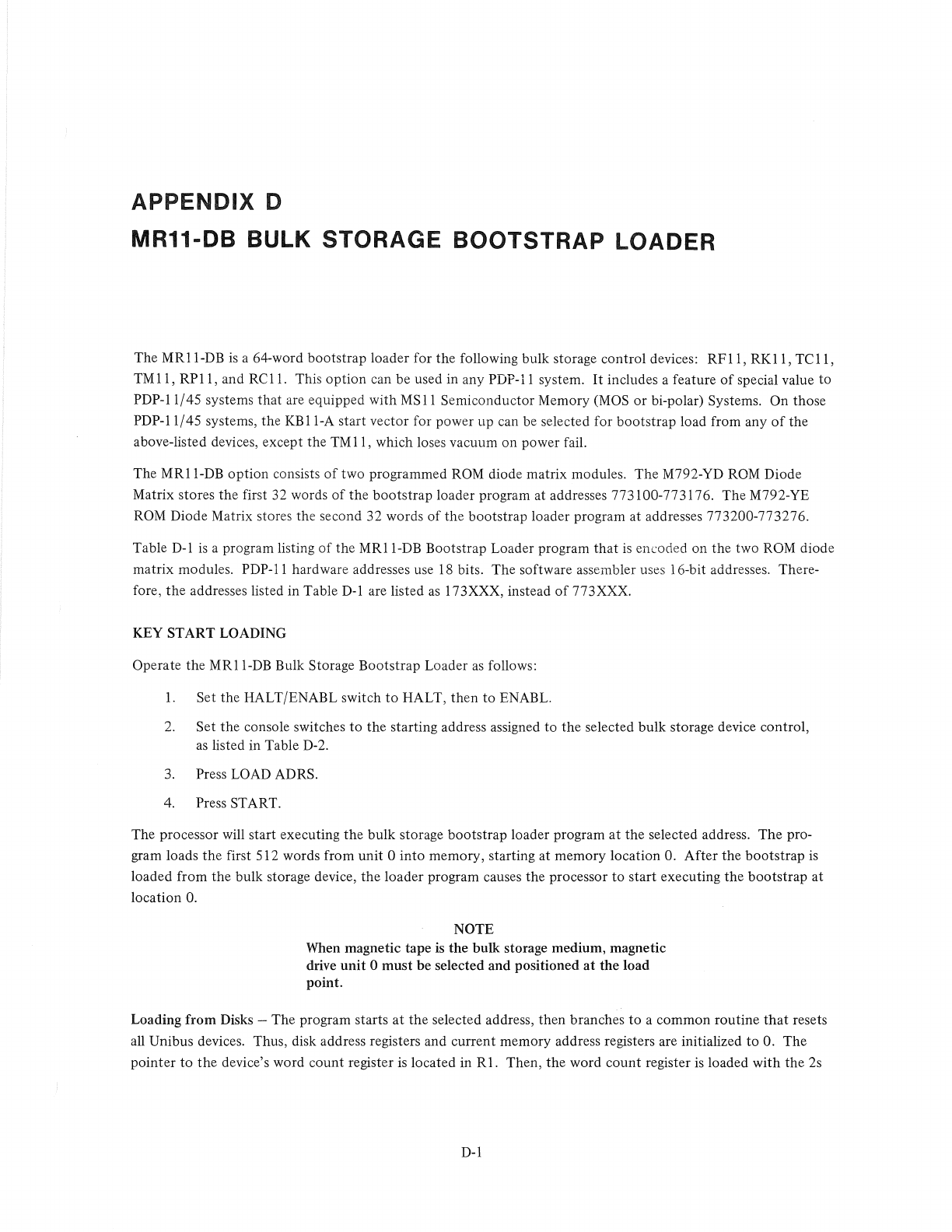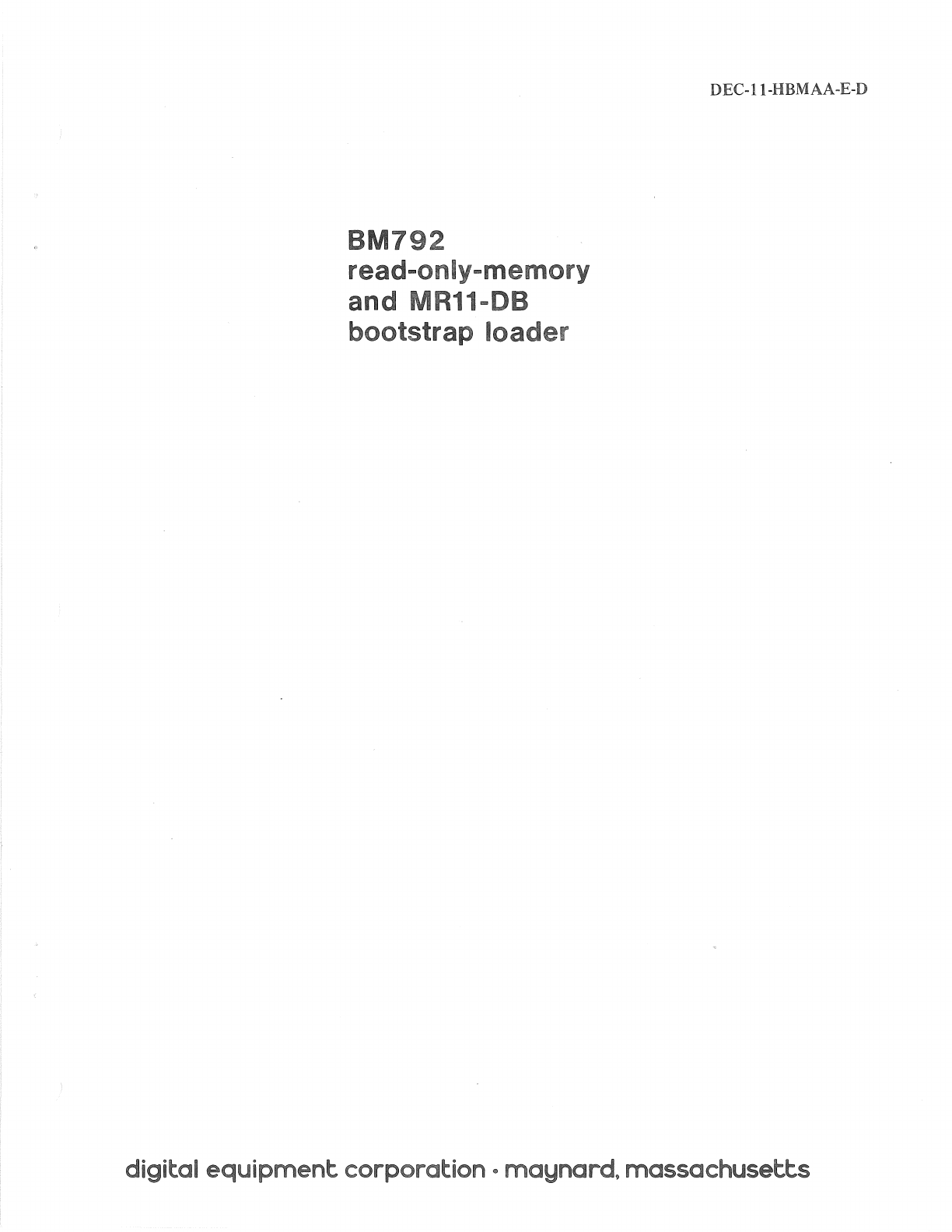 User Manual: DEC-11-HBMAA-E-D BM792 Read-Only-Memory and MR11-DB Bootstrap Loader